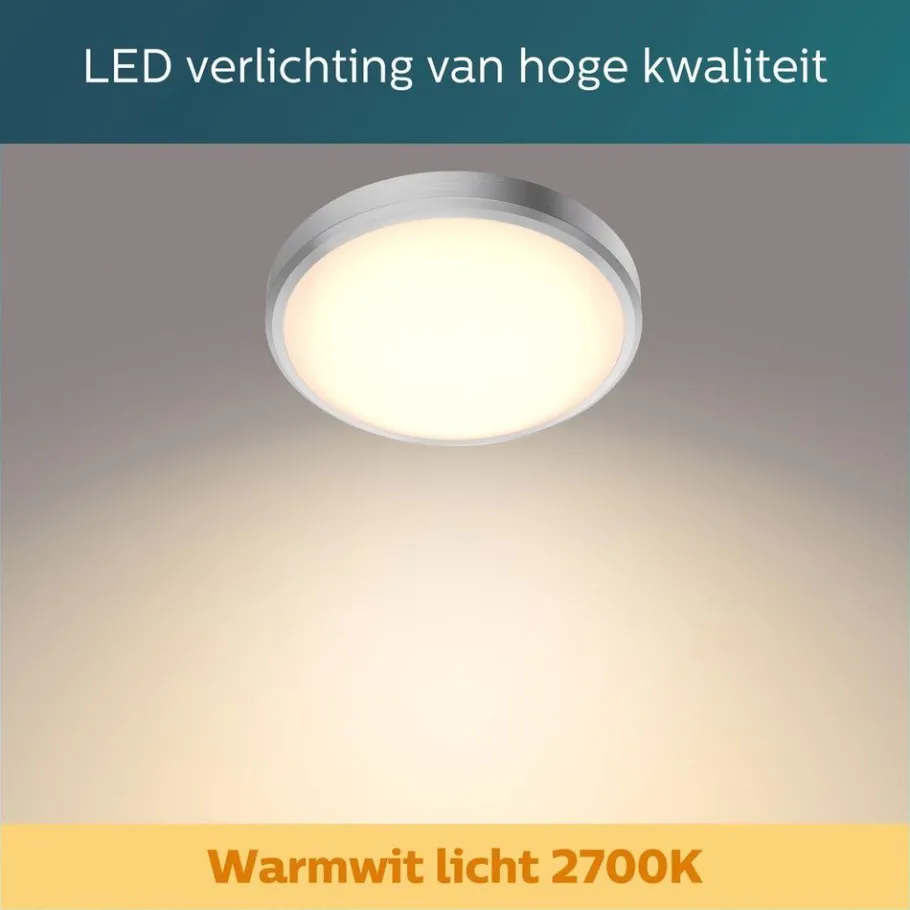 De grote, ronde Philips Balance plafonnière schijnt hoogwaardig warm en diffuus LED-licht. Deze nikkelkleurige plafondlamp oogt eigentijds en past daarmee in elk modern interieur. U kunt deze energiezuinige en duurzame lamp ook aan de wand bevestigen.