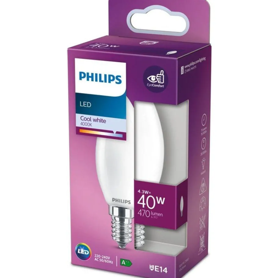 Matte LED-kaarslampen van Philips geven een mooi zacht lichteffect en gaan uitzonderlijk lang mee. Deze lamp past perfect bij kroonluchters met kleine fittingen (E14).