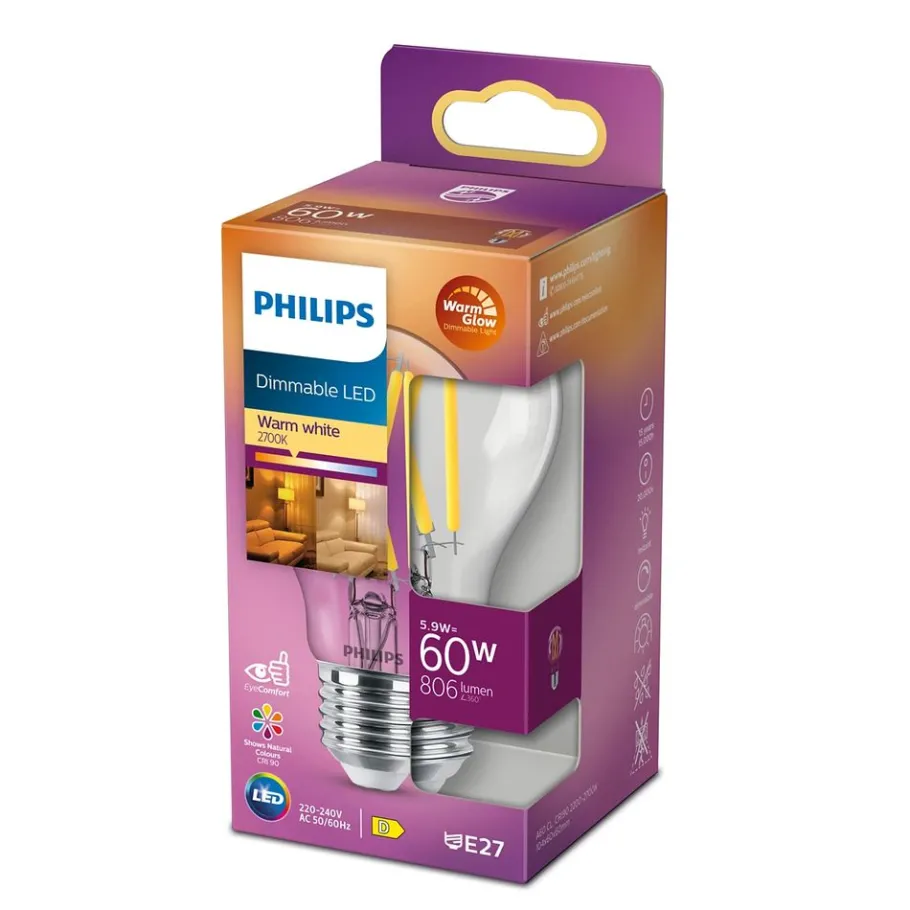 Philips LED-lampen geven een schitterend, warmwit licht, gaan uitzonderlijk lang mee en zorgen onmiddellijk voor een grote energiebesparing. Deze lamp is de perfecte vervanging voor matte traditionele lampen.