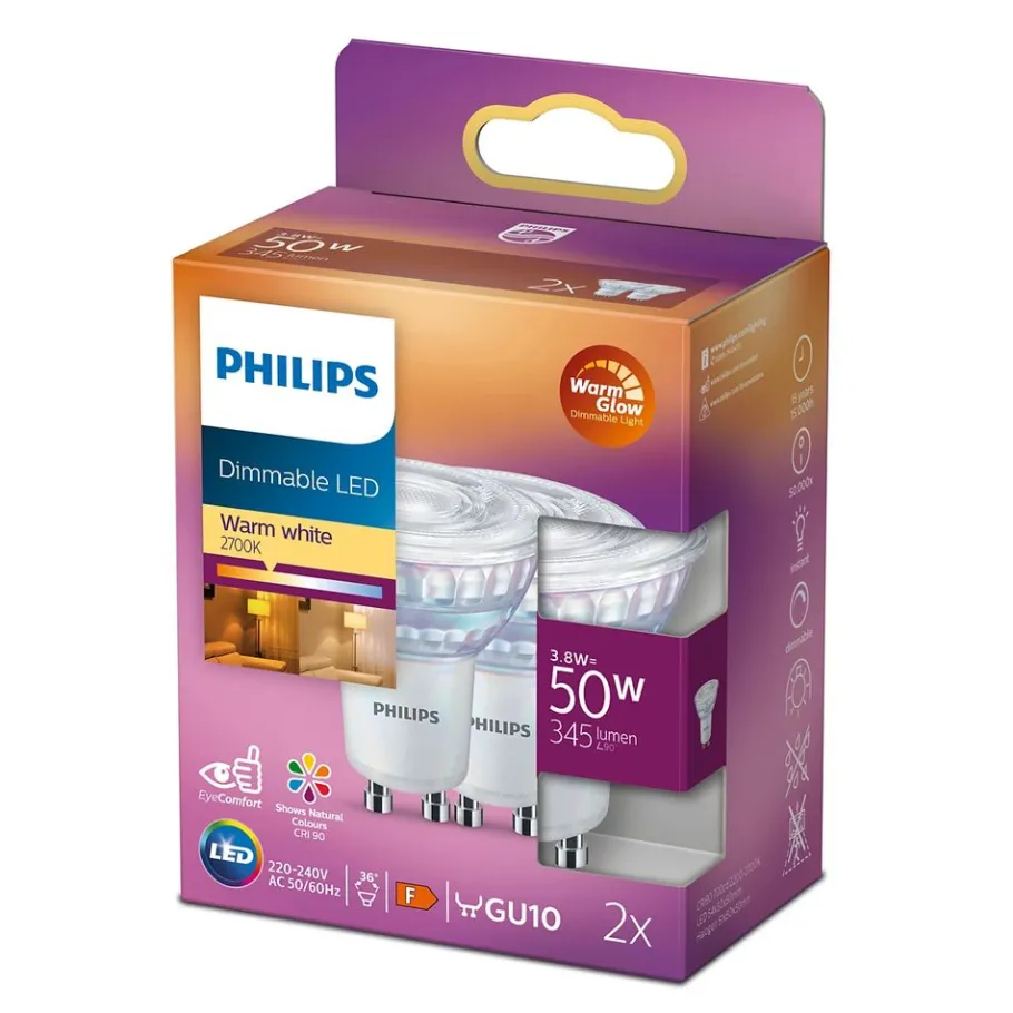 Met Philips WarmGlow LED’s kunt u uw dagelijkse verlichting dimmen tot de aangename tonen van traditionele lampen. Hoe meer u dimt, hoe warmer het licht. Hierin onderscheiden deze LED’s zich van standaard dimbare LED-lampen, die alleen minder fel worden wanneer ze worden gedimd. WarmGlow lampen zijn nu ook verbeterd met een kleurweergave-index van 90, vergelijkbaar met natuurlijke verlichting, waardoor de ware kleuren van uw interieur beter uitkomen. Of u nu ’s avonds lekker op de bank ligt of fris aan de dag wilt beginnen, Philips WarmGlow LED’s bieden het licht dat u nodig hebt.