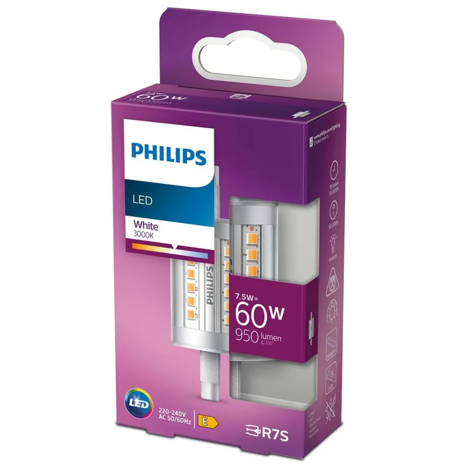 Deze innovatieve rechte LED-lamp is de perfecte vervanging voor rechte R7S-halogeenlampen en is ook nog eens veel energiezuiniger.