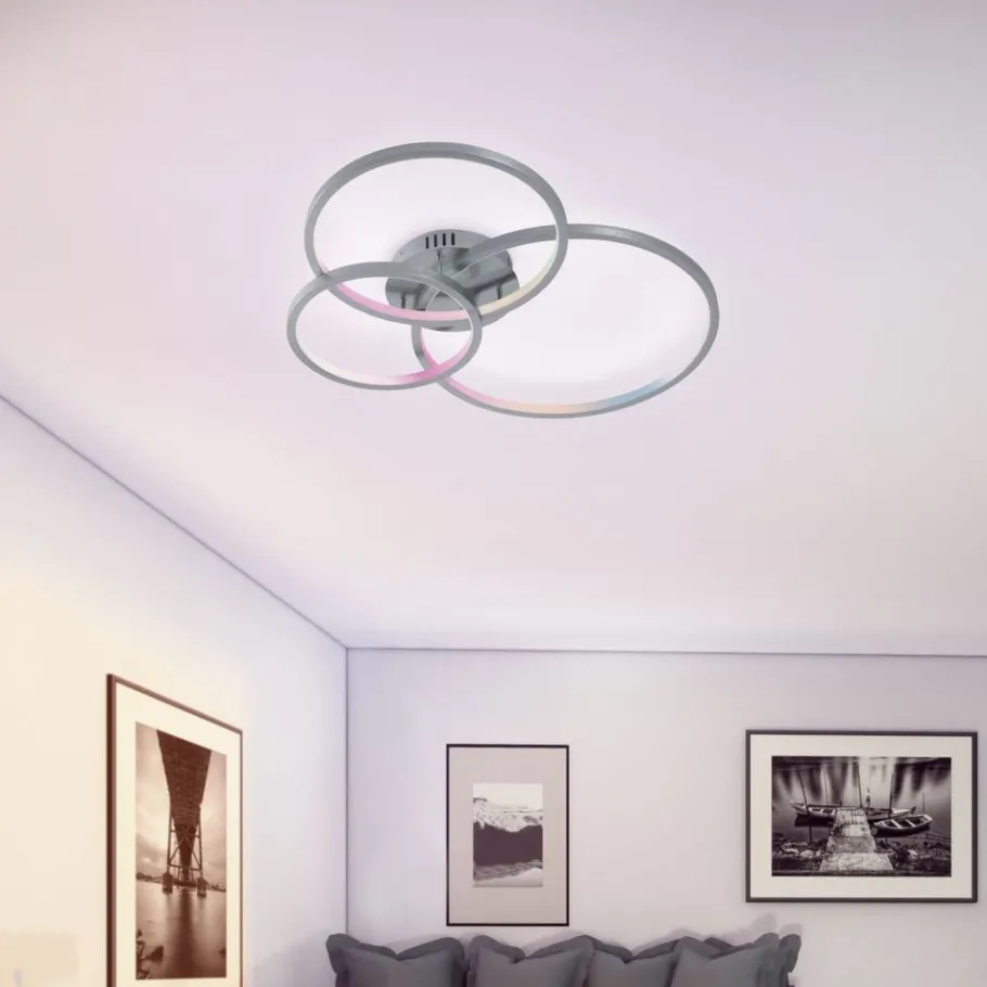 Praktisch, functioneel en vooral stijlvol! De innovatieve lampen van de serie AARON overtuigen niet alleen met hun moderne design, ze beschikken bovendien ook over de innovatieve WiZ-technologie. De WiZ-lamp biedt een ongelooflijk kleurenspectrum van 16 miljoen kleuren en 64.000 wittinten. Laat u wekken door zacht zonnelicht, begin boordevol energie aan de dag, ontspan u met rustgevend licht of maak van de nacht dag en dat alles helemaal eenvoudig via app. In tegenstelling tot andere Smart Home-providers is bij WiZ-lampen geen extra gateway nodig, zodat alle lampen volledig flexibel via een mobiel eindapparaat bediend kunnen worden. Bovendien kunnen de lampen bestuurd worden met Alexa of Google Home, zodat de bediening via spraakassistent mogelijk is. Maar ook met de meegeleverde afstandsbediening of via de lichtschakelaar kunnen verschillende lichtprogramma’s en instellingen geselecteerd worden. Nog een voordeel is de flexibiliteit bij het gebruik: Zo kunnen de WiZ-lampen door meerdere gebruikers bediend, aan verschillende ruimtes of locaties toegekend en van overal bestuurd worden. Het kleurschema in mat nikkel zorgt voor een gemakkelijke integratie van voor handen zijnde inrichtingsconcepten. Daarnaast beschikt de lamp over een moderne ledtechnologie die zich onderscheidt met een hoge lichtkwaliteit en energie-efficiëntie. In vergelijking met gewone halogeenlampen kan tot 80% bespaard worden op de energiekosten. Bovendien hebben ledlampen een lange levensduur, produceren minder warmte en zijn milieuvriendelijk.