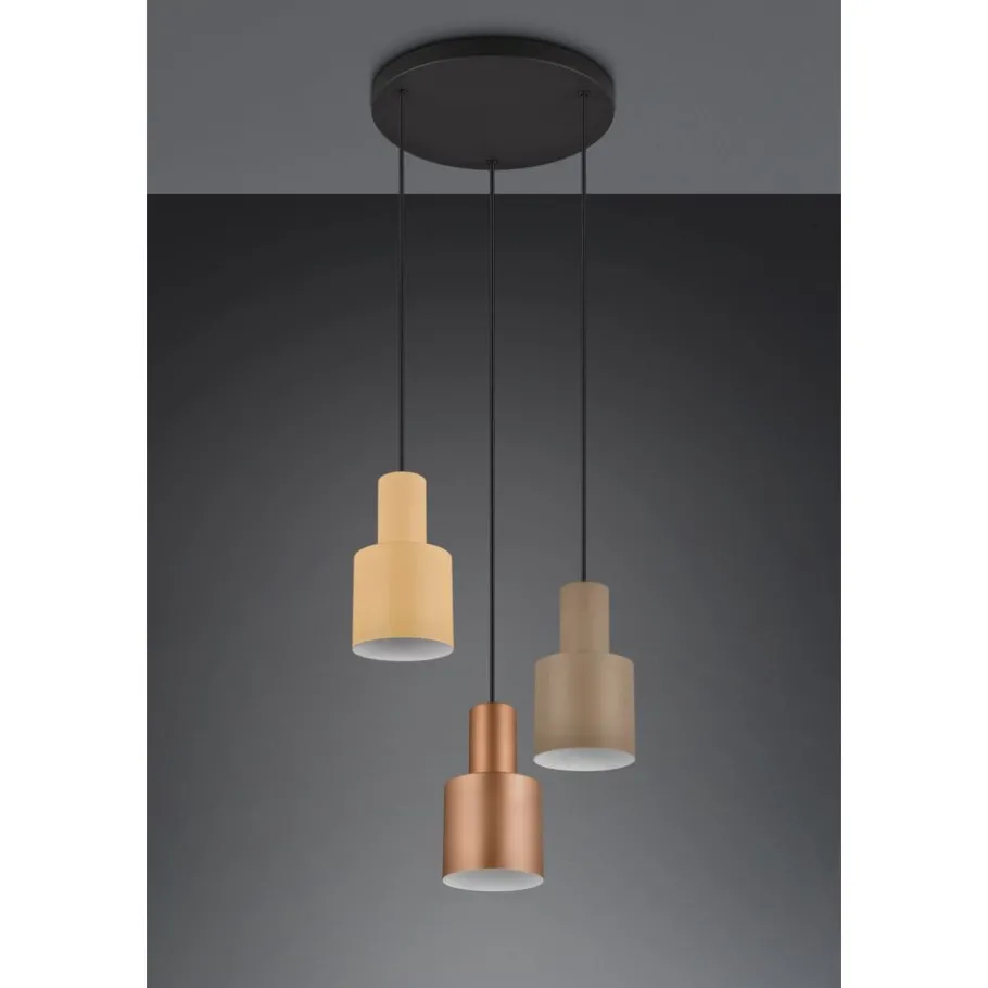 Het combineren van lichtkappen in verschillende kleuren en hoogtes trekt de aandacht en maakt van de lamp een bijzonder designelement in je huis – net als de lampen uit de AGUDO-serie. De hanglamp met drie lampen straalt pure gezelligheid en minimalistische esthetiek uit dankzij de natuurlijke kleurstelling en het elegante ontwerp. Boven een eet- of woonkamertafel verbetert de lamp de sfeer in de kamer met haar warme, natuurlijke uitstraling. De karakteristieke kleurencombinatie van gedempte natuurlijke kleuren en mat zwart geeft de armatuur stijl. De matte metalen afwerking van de lampenkappen rondt de armatuur perfect af en zorgt voor een elegante highlight. Het gebruik van LED lichtbronnen wordt aanbevolen voor energiebesparende verlichting. Deze vormen een ideaal alternatief voor conventionele halogeenlichtbronnen en bieden een hoge lichtkwaliteit en energiebesparingen tot 80%. Met LED lichtbronnen profiteert u ook van een lange levensduur en een lage warmteontwikkeling, terwijl het milieu wordt beschermd.