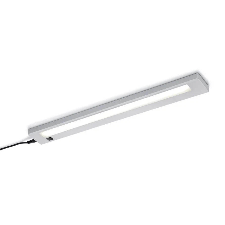 Een goed verlicht werkblad in de keuken is het allerbelangrijkste. Met de ALINO onderkastlamp voldoe je aan alle eisen. Met een breedte van 55 cm kan hij gemakkelijk onder elke kast worden gemonteerd en zorgt hij voor uitstekend licht in je keuken. Het licht kan worden in- en uitgeschakeld met de schakelaar. Het tijdloze titaniumkleurige ontwerp past perfect bij verschillende inrichtingsstijlen. Daarnaast beschikt de lamp over een moderne ledtechnologie die zich onderscheidt met een hoge lichtkwaliteit en energie-efficiëntie. In vergelijking met gewone halogeenlampen kan tot 80% bespaard worden op de energiekosten. Bovendien hebben ledlampen een lange levensduur, produceren minder warmte en zijn milieuvriendelijk.