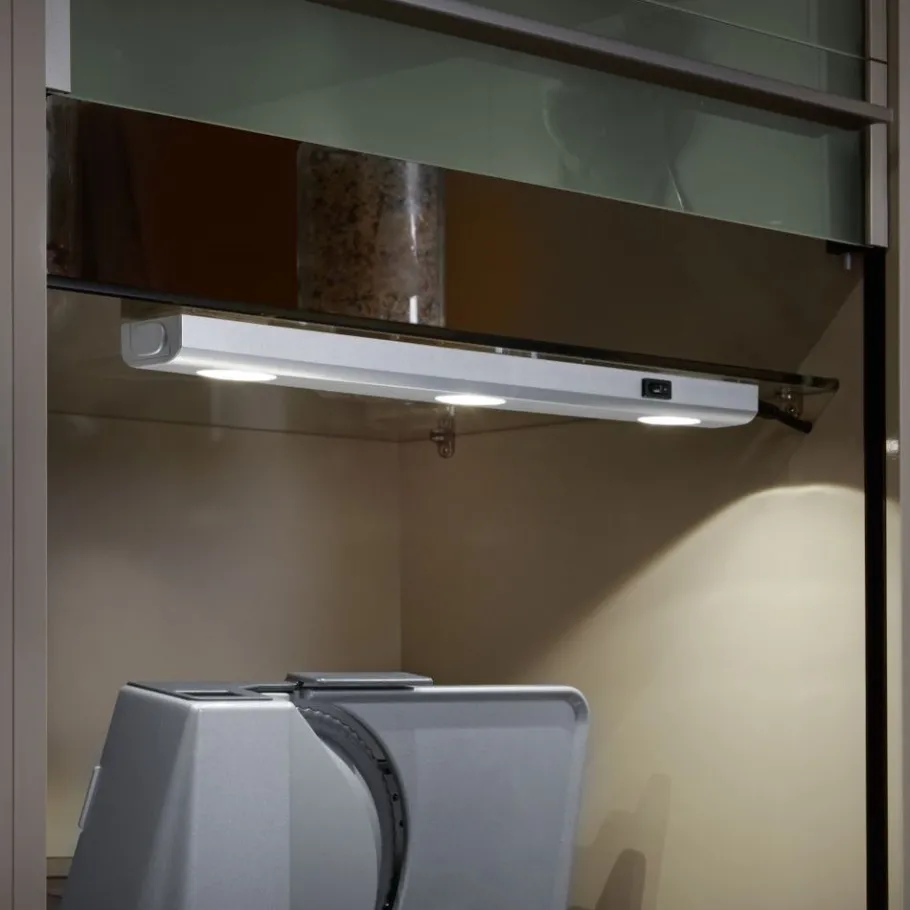 De ARAGON lamp heeft een klassiek ontwerp en is functioneel in gebruik. Als onderkastlamp voldoet hij aan alle eisen en is hij eenvoudig te bedienen met de aan/uit-schakelaar. De lamp is 41 cm lang en heeft drie lichtbronnen. Dankzij het eenvoudige titaniumkleurige ontwerp kan de lamp worden aangepast aan alle denkbare kleurencombinaties en bestaande inrichtingsstijlen. Daarnaast beschikt de lamp over een moderne ledtechnologie die zich onderscheidt met een hoge lichtkwaliteit en energie-efficiëntie. In vergelijking met gewone halogeenlampen kan tot 80% bespaard worden op de energiekosten. Bovendien hebben ledlampen een lange levensduur, produceren minder warmte en zijn milieuvriendelijk.