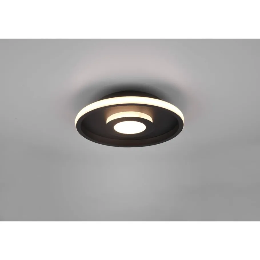 De moderne plafondlamp ASCARI heeft een geraffineerd ontwerp. Perfect geplaatst wordt de lamp een echte blikvanger in je woonkamer. De geïntegreerde SWITCH dimmer kan worden gebruikt om drie verschillende helderheidsniveaus te selecteren met een conventionele lichtschakelaar. Door de lichtintensiteit te variëren van 100% tot 50% en 25% kan de lamp worden aangepast aan verschillende vereisten. Dankzij de IP44-beschermingsgraad is de lamp beschermd tegen spatwater en daarom geschikt voor vochtige ruimtes zoals de badkamer. Met zijn ronde matzwarte afwerking creëert de armatuur een geweldig contrast en komt hij echt tot zijn recht. De armatuur is ook voorzien van moderne LED-technologie, die wordt gekenmerkt door een hoge lichtkwaliteit en energie-efficiëntie. Vergeleken met conventionele halogeenlichtbronnen kan tot 80% op de energiekosten worden bespaard. LED lichtbronnen hebben ook een lange levensduur, genereren minder warmte en beschermen het milieu.