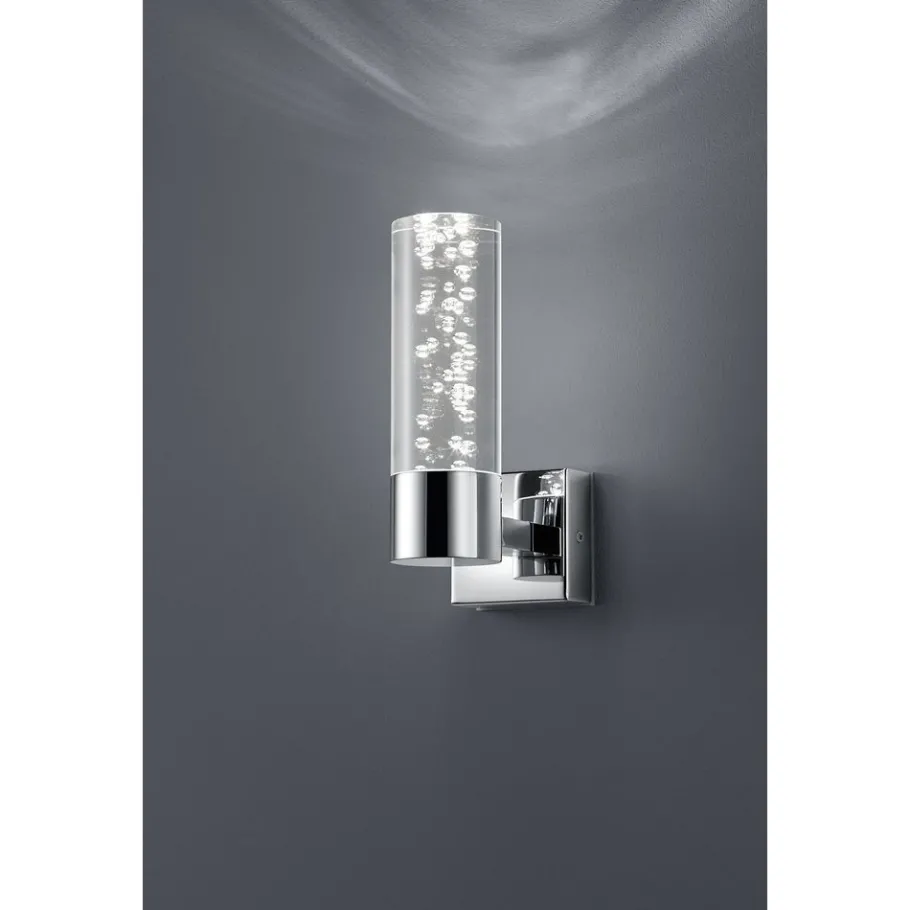 De BOLSA wandlamp is een blikvanger in elke badkamer! Dankzij de vorm in combinatie met de bellenlook ziet deze lamp eruit als een bijzonder designerstuk. Dankzij de IP44-beschermingsgraad is ze ideaal voor vochtige ruimtes en verfraait ze ook het uiterlijk ervan. De lamp heeft een hoogte van 19 cm en een breedte van 7 cm. De chroomkleur geeft het armatuur een glanzende uitstraling, die wordt afgerond door het decoratieve glas. Daarnaast beschikt de lamp over een moderne ledtechnologie die zich onderscheidt met een hoge lichtkwaliteit en energie-efficiëntie. In vergelijking met gewone halogeenlampen kan tot 80% bespaard worden op de energiekosten. Bovendien hebben ledlampen een lange levensduur, produceren minder warmte en zijn milieuvriendelijk.