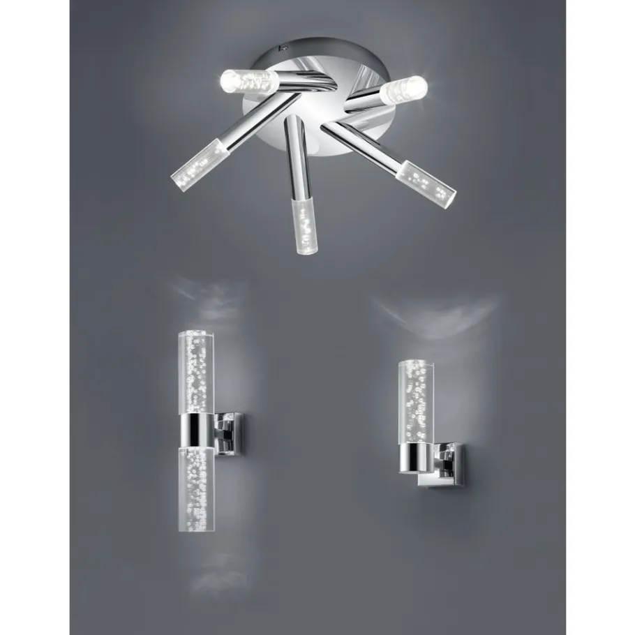 De BOLSA plafondlamp trekt de aandacht in elke badkamer! Dankzij de vorm in combinatie met de bellenlook ziet deze lamp eruit als een bijzonder designerstuk. Dankzij de IP44-beschermingsgraad is ze ideaal voor vochtige ruimtes en verfraait ze ook het uiterlijk ervan. De lamp heeft een diameter van 42 cm. De chroomkleur geeft het armatuur een glanzende uitstraling, die wordt afgerond door het decoratieve glas. Daarnaast beschikt de lamp over een moderne ledtechnologie die zich onderscheidt met een hoge lichtkwaliteit en energie-efficiëntie. In vergelijking met gewone halogeenlampen kan tot 80% bespaard worden op de energiekosten. Bovendien hebben ledlampen een lange levensduur, produceren minder warmte en zijn milieuvriendelijk.