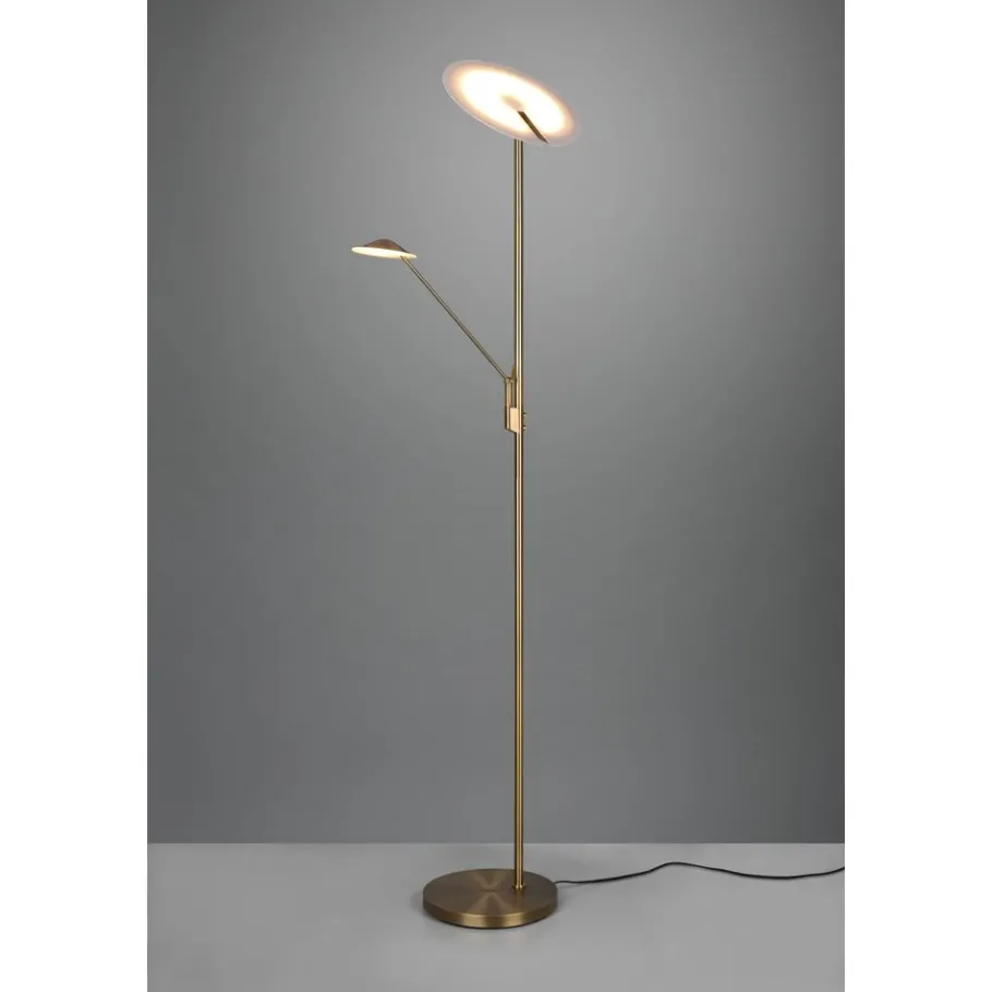 De moderne schijnwerper BRANTFORD overtuigt met zijn praktische functies en vindt zijn optimale plaats naast de bureautafel of bank. De helderheid en lichtkleur kunnen eenvoudig worden gedimd en aangepast via een geïntegreerde sensordimmer. De hoofdlichtbron kan ook los van de leesarm worden bediend, zodat u individueel het licht kunt gebruiken dat u nodig hebt. Dankzij de geïntegreerde geheugenfunctie wordt het laatst ingestelde lichtscenario automatisch hernomen. In klassiek oud messing kan de lamp gecombineerd worden met vele inrichtingsstijlen. Daarnaast beschikt de lamp over een moderne ledtechnologie die zich onderscheidt met een hoge lichtkwaliteit en energie-efficiëntie. In vergelijking met gewone halogeenlampen kan tot 80% op de energiekosten worden bespaard. Bovendien profiteert u met ledlichtbronnen van een lange levensduur, lage warmteontwikkeling en beschermt u tegelijkertijd het milieu.