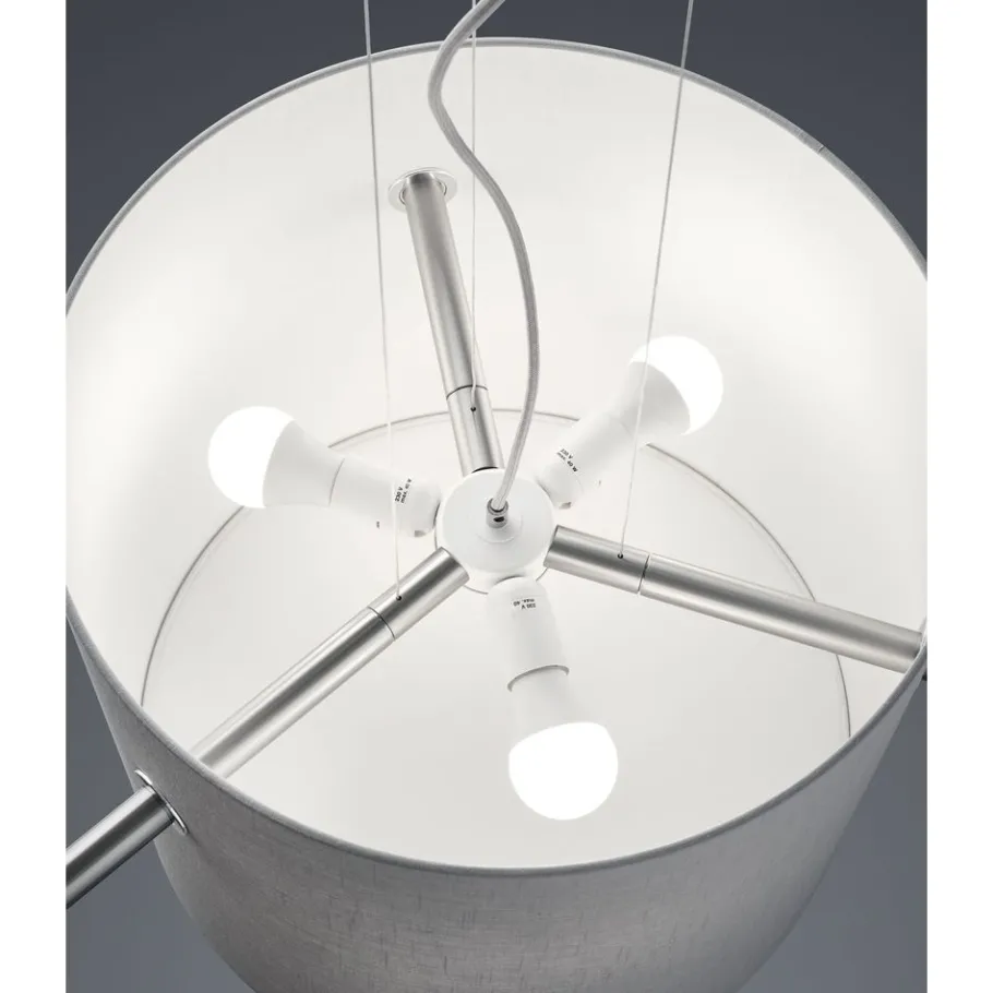 CAMDEN straalt exclusiviteit en grandeur uit. De imposante kappen van gestructureerde stof maken de serie automatisch tot het middelpunt van elke kamer. In combinatie met opvallende metalen elementen is deze serie DE perfecte verlichting! De stoffen kap zorgt ook voor een bijzonder zacht en gezellig licht dat uitnodigt om je goed te voelen. Dankzij de smaakvolle kleurencombinatie van mat nikkel en grijs creëert de lamp een tijdloze en moderne omgeving. Voor een energiebesparende verlichting is het gebruik van een ledlichtbron aanbevolen. Deze zijn een optimaal alternatief voor gewone halogeenlampen en staan voor een hoge lichtkwaliteit en een energiebesparing van tot 80%. Bovendien profiteert u bij ledlichtbronnen van een lange levensduur, een geringe warmteontwikkeling en spaart tegelijkertijd het milieu.