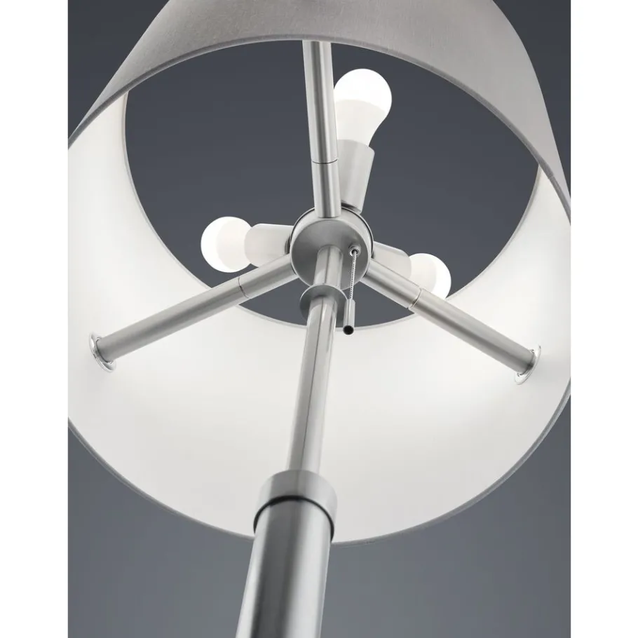 CAMDEN straalt exclusiviteit en grandeur uit. De imposante kappen van geweven stof maken de serie automatisch tot het middelpunt van elke kamer. In combinatie met opvallende metalen elementen is deze serie DE perfecte verlichting! De stoffen kap zorgt ook voor een bijzonder zacht en gezellig licht dat uitnodigt om je goed te voelen. Een praktisch hoogtepunt van deze lamp is de hoogteverstelling, waardoor de vloerlamp op elk moment kan worden aangepast. De trekschakelaar zorgt er ook voor dat de lamp snel en gemakkelijk aan en uit kan worden geschakeld. Dankzij de smaakvolle kleurencombinatie van mat nikkel en grijs creëert de lamp een tijdloze en moderne omgeving. Voor een energiebesparende verlichting is het gebruik van een ledlichtbron aanbevolen. Deze zijn een optimaal alternatief voor gewone halogeenlampen en staan voor een hoge lichtkwaliteit en een energiebesparing van tot 80%. Bovendien profiteert u bij ledlichtbronnen van een lange levensduur, een geringe warmteontwikkeling en spaart tegelijkertijd het milieu.