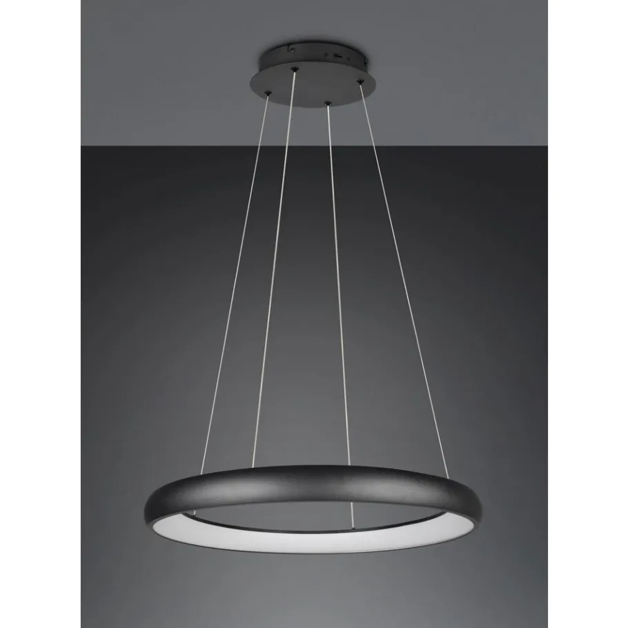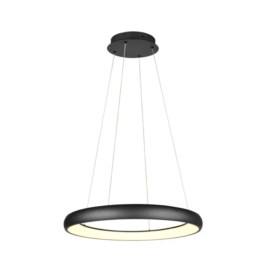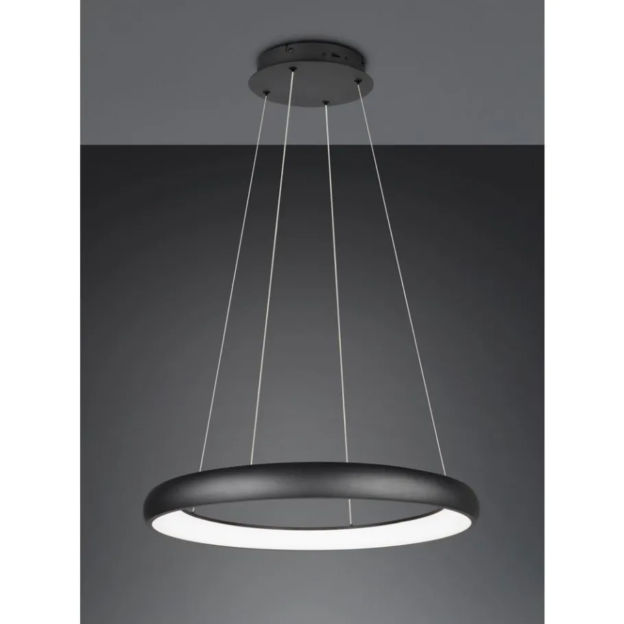 Helderheid en functionaliteit gecombineerd – de CARDONA hanglamp maakt indruk met haar opvallende ontwerp, dat wordt gekenmerkt door een zwevende ring. Deze elegante ring lijkt letterlijk in de ruimte te zweven en trekt ieders aandacht. De armatuur is ideaal voor moderne woonkamers, kantoren of eetkamers en zorgt voor een gelijkmatige, niet-verblindende verlichting dankzij de subtiele lichtbron in de ring, waardoor een aangename sfeer wordt gecreëerd. De helderheid kan in drie niveaus worden geregeld met een conventionele lichtschakelaar en de lichtkleur kan direct worden aangepast met een schakelaar op het armatuur. Het matzwarte oppervlak geeft elke kamer een tijdloze elegantie en een moderne touch. De armatuur is ook voorzien van moderne LED-technologie, die wordt gekenmerkt door een hoge lichtkwaliteit en energie-efficiëntie. Vergeleken met conventionele halogeenlichtbronnen kan tot 80% op de energiekosten worden bespaard. LED lichtbronnen hebben ook een lange levensduur, produceren minder warmte en beschermen het milieu.