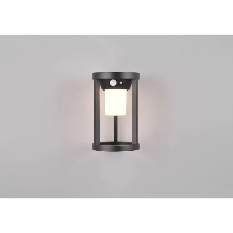 De buitenlamp CARMO wordt iets heel bijzonders in uw huis. Het geïntegreerde zonnepaneel, dat het licht van de zon opvangt en omzet in elektriciteit, biedt een flexibele en energiebesparende mogelijkheid voor gebruik in de tuin, op het terras of op weg naar huis. Volledig zonder stroomaansluiting en met geïntegreerde accu zorgt de wandlamp voor licht waar het nodig is. De meegeleverde grondpen zorgt voor een probleemloze bevestiging van de CARMO in uw tuin. Daarnaast beschikt de lamp over een permanent oriëntatielicht, dat bij schemering of in het donker automatisch oplicht met een helderheid van ca. 10%. Als er beweging is in de directe omgeving schakelt het licht naar 100%. De verlichtingsduur en de gevoeligheid kunnen worden aangepast door middel van een schakelaar op de lamp. De beschermingsklasse IP54 onderstreept de weerbestendigheid van de lamp. De lamp van spuitgegoten aluminium in antraciet wordt een blikvanger in uw buitenzone. Daarnaast beschikt de lamp over een moderne ledtechnologie die zich onderscheidt met een hoge lichtkwaliteit en energie-efficiëntie. In vergelijking met gewone halogeenlampen kan tot 80% bespaard worden op de energiekosten. Bovendien hebben ledlampen een lange levensduur, produceren minder warmte en zijn milieuvriendelijk