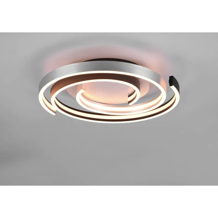 De gebogen lijnen van de plafondlamp CAYA brengen elegantie en lichtheid in uw huis. Met zijn stijlvolle en moderne design past de lamp in verschillende inrichtingsstijlen en zorgt voor een gezellige sfeer. De lamp heeft een SWITCH-dimmer en dus kan de helderheid met een conventionele lichtschakelaar worden aangepast van 100% naar 50% en 25%. Bovendien kunnen er drie lichtkleuren (warm wit, neutraal wit en daglichtwit) via een schakelaar direct op de lamp worden ingesteld. Dankzij het moderne kleurenschema in geborsteld aluminium en mat zwart vindt de lamp in vele kleurconcepten een plekje. Daarnaast beschikt de lamp over een moderne ledtechnologie die zich onderscheidt met een hoge lichtkwaliteit en energie-efficiëntie. In vergelijking met gewone halogeenlampen kan tot 80% bespaard worden op de energiekosten. Daarnaast hebben ledlichtbronnen een lange levensduur, genereren minder warmte en zijn milieuvriendelijk.