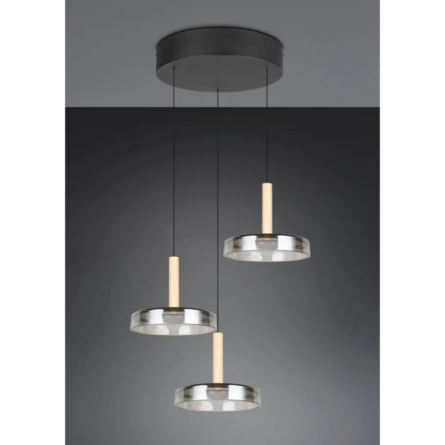 De CELESTE hanglamp combineert stijlvolle elegantie met hoge functionaliteit. Het unieke ontwerp van metaal, glas en hout creëert bijzondere accenten in elke kamer. De futuristisch ontworpen glazen kappen fascineren met een reflecterend oppervlak dat adembenemende lichtspelingen en een warme, uitnodigende sfeer creëert. Met de innovatieve Lift me functie kan de hoogte van de lichtbronnen flexibel worden aangepast aan jouw wensen. Boven de eettafel, in de keuken of in de woonkamer – CELESTE zorgt altijd voor de perfecte verlichting. Dankzij de geïntegreerde SWITCH-dimmer kun je de helderheid in drie niveaus rechtstreeks via de conventionele lichtschakelaar regelen. Zo heb je volledige controle over de lichtintensiteit en kun je het licht aanpassen aan je stemming of het moment van de dag. De stijlvolle combinatie van zwart mat metaal, verchroomd glas en natuurlijk hout past naadloos in zowel moderne als klassieke inrichtingsstijlen en laat de lamp stralen in elke omgeving. De armatuur is ook voorzien van moderne LED-technologie, die wordt gekenmerkt door een hoge lichtkwaliteit en energie-efficiëntie. Vergeleken met conventionele halogeenlichtbronnen kan tot 80% op de energiekosten worden bespaard. LED lichtbronnen hebben ook een lange levensduur, produceren minder warmte en beschermen het milieu.