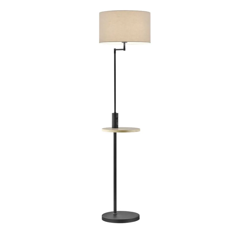 De moderne CLAAS vloerlamp is perfect om in de gang of naast de bank te plaatsen en creëert lichtaccenten die je woonruimte een gezellige sfeer geven. De vloerlamp heeft ook een klein houten tafeltje en een USB-poort met oplaadfunctie, waardoor hij ideaal is om bijvoorbeeld je mobiele telefoon naast de bank te leggen en tegelijkertijd op te laden. De praktische lamp is 160 cm hoog en heeft een projectie van 40 cm. De combinatie van matzwart en de grijze stoffen kap, samen met de houten tafel, geeft de lamp een moderne uitstraling. Het gebruik van LED lichtbronnen wordt aanbevolen voor energiebesparende verlichting. Deze vormen een ideaal alternatief voor conventionele halogeenlichtbronnen en bieden een hoge lichtkwaliteit en energiebesparingen tot 80%. Met LED lichtbronnen profiteert u ook van een lange levensduur en een lage warmteontwikkeling, terwijl het milieu wordt beschermd.