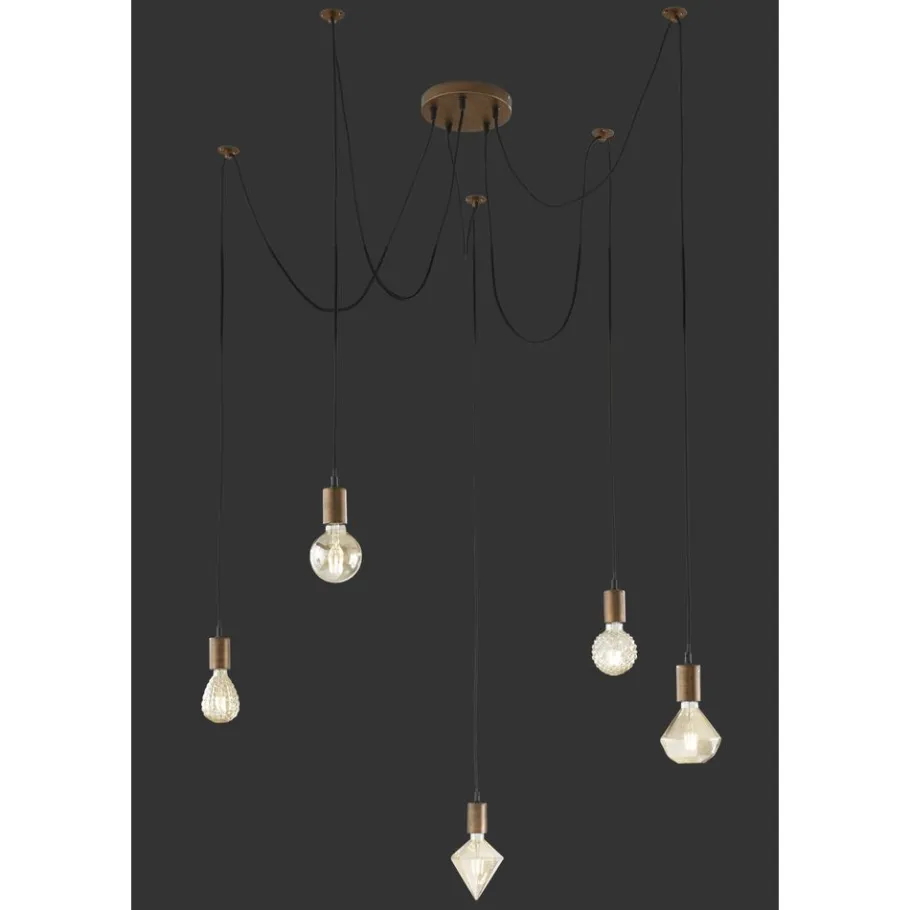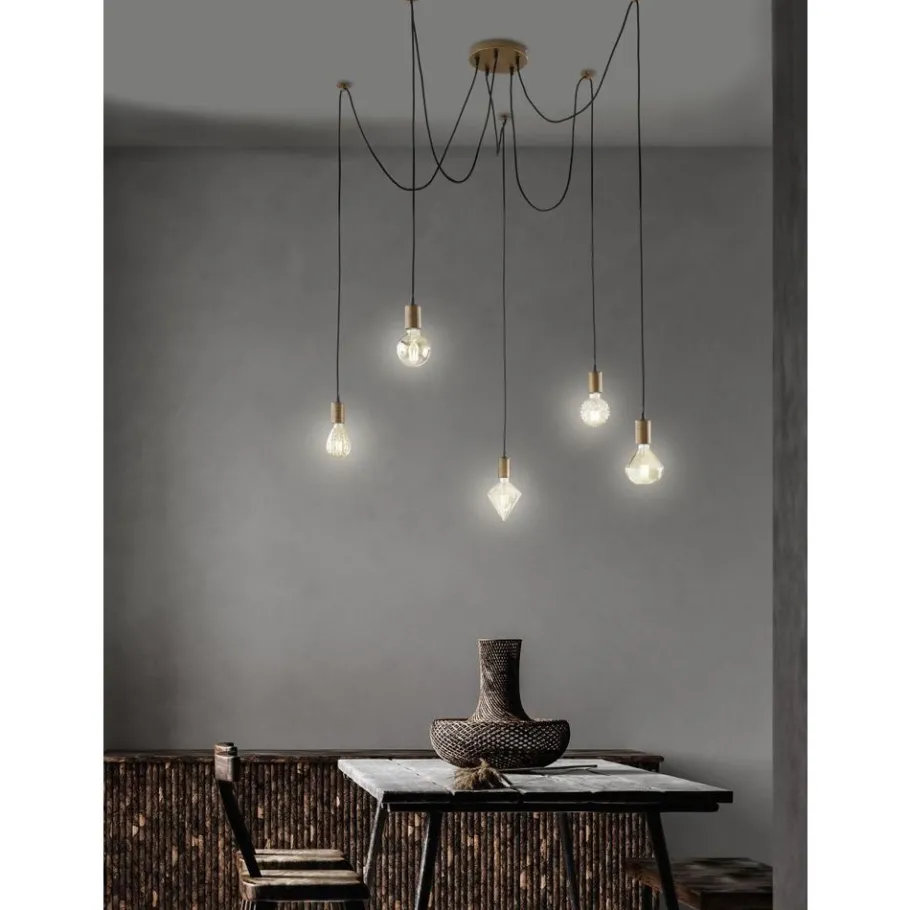 Minder is meer! Kabel, fitting, lamp – de nieuwe minimalisten creëren moderne verlichtingsopties. De CORD hanglamp maakt indruk met zijn antiek koperen fitting in combinatie met een opvallende gloeilamp die het centrale designelement wordt. Dankzij de constructie en het eenvoudige ontwerp kan CORD op verschillende manieren worden gebruikt en ziet ze er elegant en modern uit. Elk van de vijf hangers heeft een maximale lengte van 200 cm en kan naar wens in hoogte worden versteld. In het midden boven de eettafel of tafel in de woonkamer geplaatst, wordt de lamp een echte blikvanger. De individuele baldakijnen hebben een diameter van 18 cm en zijn ontworpen voor een lichtbron met een E27 fitting. Om het decoratieve karakter te behouden, raden we een LED gloeilamp aan, die niet alleen visueel bij het ontwerp van de lamp past, maar ook een aangename sfeer creëert.