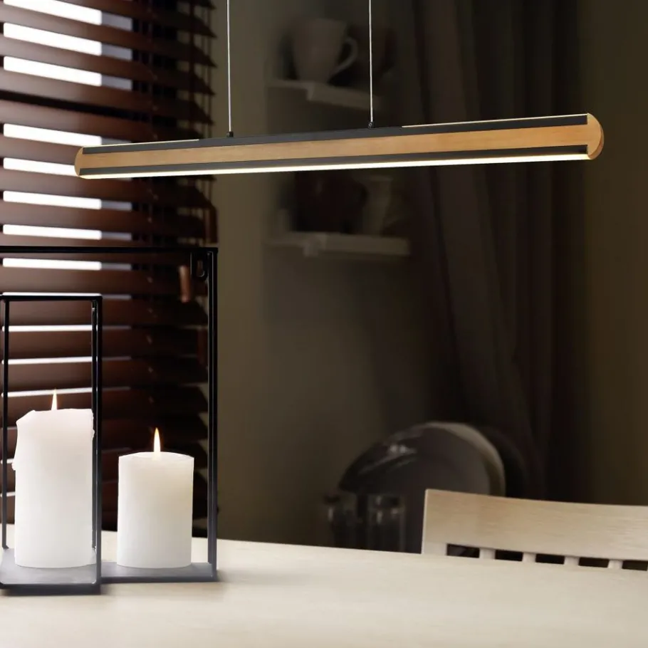 Met de stijlvolle materiaalmix van hout en metaal verleent DEACON woonruimtes een bijzondere sfeer. De lichtkleur alsook de helderheid kunnen heel gemakkelijk geregeld worden via een touchfunctie. Bovendien overtuigt de lamp met een lichtuitlaat naar boven en onderen. Het kleurenschema in mat zwart zorgt in combinatie met het heldere hout voor moderne en knusse accenten. Daarnaast beschikt de lamp over een moderne ledtechnologie die zich onderscheidt met een hoge lichtkwaliteit en energie-efficiëntie. In vergelijking met gewone halogeenlampen kan tot 80% bespaard worden op de energiekosten. Bovendien hebben ledlampen een lange levensduur, produceren minder warmte en zijn milieuvriendelijk.