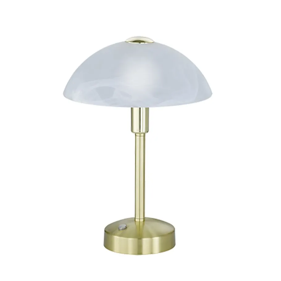 De DONNA tafellamp maakt indruk met zijn eenvoudige elegantie en tijdloze uitstraling. De lamp is gemaakt van metaal en wordt gecombineerd met een glazen lampenkap, die een gelijkmatig en niet-verblindend licht uitstraalt. Dankzij het eenvoudige ontwerp kan de lamp gemakkelijk worden geïntegreerd in verschillende inrichtingsstijlen en is ze geschikt als extra lamp naast de bank, als lamp op het nachtkastje naast het bed of op de commode. Bovendien kan de helderheid geleidelijk worden aangepast met de geïntegreerde 4-voudige touchdimmer, die wordt bediend met de knop op de voet van de lamp. De tafellamp is 30 cm hoog en de lampenkap heeft een diameter van 22,5 cm. De voet is afgewerkt in elegant mat messing en zorgt samen met het albastkleurige glas voor een harmonieuze totaaluitstraling. Daarnaast beschikt de lamp over een moderne ledtechnologie die zich onderscheidt met een hoge lichtkwaliteit en energie-efficiëntie. In vergelijking met gewone halogeenlampen kan tot 80% bespaard worden op de energiekosten. Bovendien hebben ledlampen een lange levensduur, produceren minder warmte en zijn milieuvriendelijk.