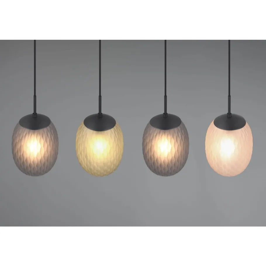 Gekleurde glazen met opvallende reliëfs zijn erg populair – net als het FACETTE-assortiment! Het samenspel van vormen, creatieve details en matte kleuren laat een blijvende indruk na en creëert onvergetelijke accenten in je woonruimte. Of het nu boven de eettafel of het aanrecht is, de vier-lichts pendelarmatuur maakt indruk met zijn niet-verblindende lichtverdeling en oogverblindende reflecties. Het kleurontwerp in groen, amber en rook maakt de armatuur tot een echte blikvanger en zorgt voor een indrukwekkend lichteffect. Het gebruik van LED lichtbronnen wordt aanbevolen voor energiebesparende verlichting. Deze vormen een ideaal alternatief voor conventionele halogeenlichtbronnen en bieden een hoge lichtkwaliteit en energiebesparingen tot 80%. Met LED lichtbronnen profiteert u ook van een lange levensduur en een lage warmteontwikkeling, terwijl het milieu wordt beschermd.