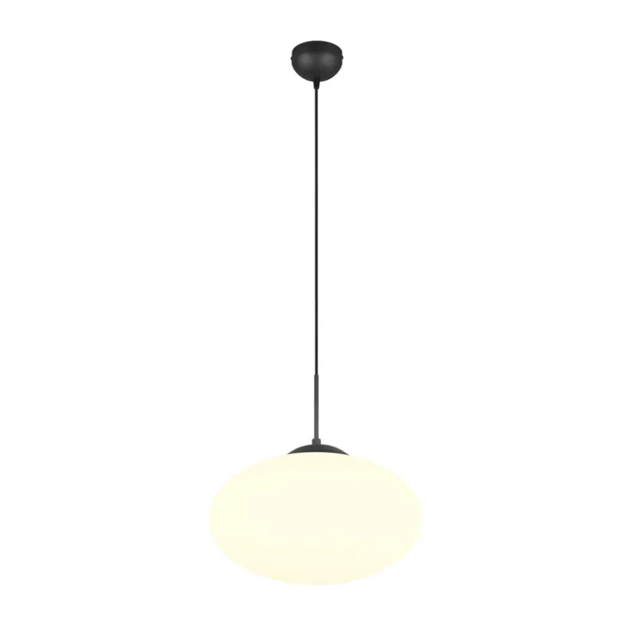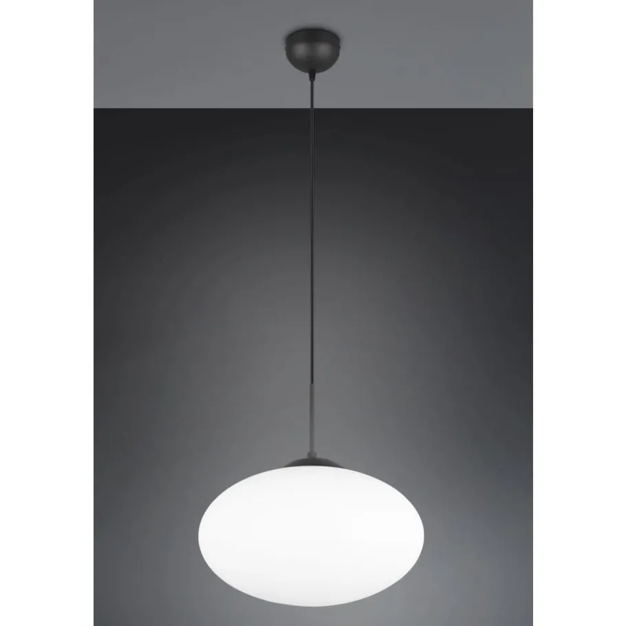 De FOMENTO hanglamp creëert zachte accenten boven je eet- of woonkamertafel. De elegante, ellipsvormige lampkop van opaalglas geeft het armatuur een speciale touch en verspreidt het licht aangenaam in de omgeving. De combinatie van mat zwart en wit glas creëert tegelijkertijd een vleugje elegantie en verfijning. Het gebruik van LED lichtbronnen wordt aanbevolen voor energiebesparende verlichting. Deze vormen een ideaal alternatief voor conventionele halogeenlichtbronnen en bieden een hoge lichtkwaliteit en energiebesparingen tot 80%. Met LED lichtbronnen profiteert u ook van een lange levensduur en een lage warmteontwikkeling, terwijl het milieu wordt beschermd.