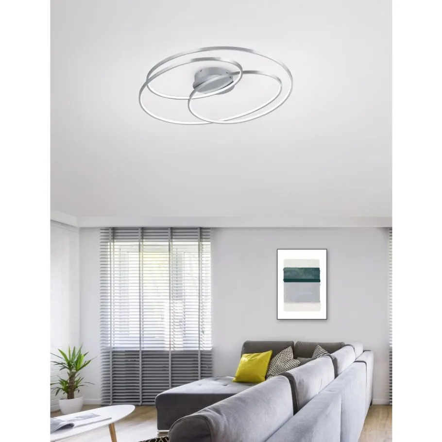 Een hoogtepunt in elke woonkamer! De plafondlamp GALE creëert sfeervolle lichteffecten. Met haar moderne en ongewone design geeft de lamp je kamer een individuele charme die indruk zal maken. In de woonkamer, hal of boven de eettafel, het maakt niet uit waar, GALE zorgt overal voor dat beetje extra! Het armatuur heeft ook een SWITCH dimmer, waardoor de helderheid kan worden aangepast van 100% tot 50% en 25% met behulp van een conventionele lichtschakelaar. De plafondlamp heeft een hoogte van 14,5 cm en een lengte van 80 cm. Dankzij het ontwerp in mat nikkelkleur kan de lamp met veel inrichtingsstijlen worden gecombineerd. Daarnaast beschikt de lamp over een moderne ledtechnologie die zich onderscheidt met een hoge lichtkwaliteit en energie-efficiëntie. In vergelijking met gewone halogeenlampen kan tot 80% bespaard worden op de energiekosten. Bovendien hebben ledlampen een lange levensduur, produceren minder warmte en zijn milieuvriendelijk.