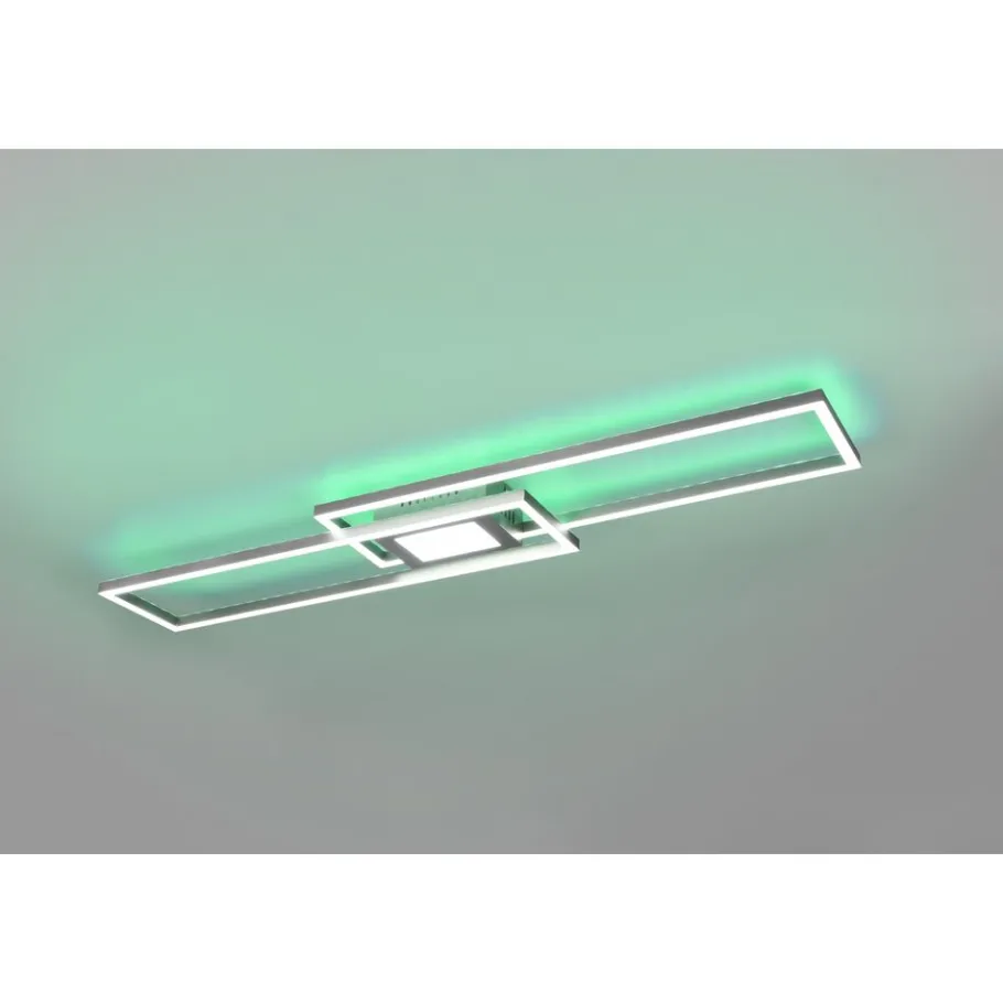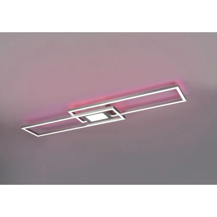 Lichtideeën met kleureigenschappen. De ledlamp GANADO creëert het passende licht voor elke stemming en situatie. Verschillend gericht en duidelijk geordend laten de lichtelementen zich naar believen aanpassen op het gebied van helderheid en lichtkleur. Bovendien zorgt de apart schakelbare, indirecte verlichting in RGB-kleuren voor een aangename lichtsfeer. Alle instellingen kunnen gemakkelijk geregeld worden via de afstandsbediening. Door het moderne kleurenschema in mat nikkel kan de lamp probleemloos met aanwezig mobilair gecombineerd worden. Daarnaast beschikt de lamp over een moderne ledtechnologie die zich onderscheidt met een hoge lichtkwaliteit en energie-efficiëntie. In vergelijking met gewone halogeenlampen kan tot 80% bespaard worden op de energiekosten. Bovendien hebben ledlampen een lange levensduur, produceren minder warmte en zijn milieuvriendelijk.