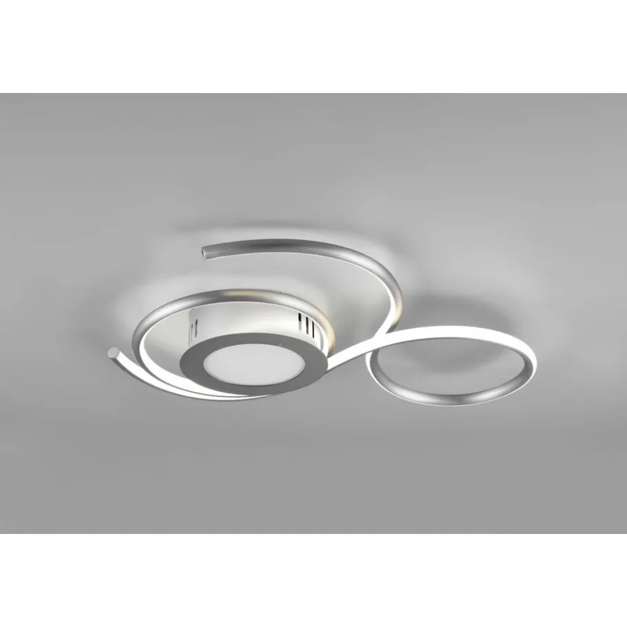 De kronkelende lamp JIVE belichaamt een moderne lichtheid. Met haar stijlvol en modern design voegt de plafondlamp zich in verschillende inrichtingsstijlen. Door middel van de afstandsbediening kunnen de nachtlampfunctie alsook de lichtintensiteit niveauloos ingesteld worden. Door het kleurschema in mat nikkel wordt de lamp een tijdloos en chic woonelement. Daarnaast beschikt de lamp over een moderne ledtechnologie die zich onderscheidt met een hoge lichtkwaliteit en energie-efficiëntie. In vergelijking met gewone halogeenlampen kan tot 80% bespaard worden op de energiekosten. Bovendien hebben ledlampen een lange levensduur, produceren minder warmte en zijn milieuvriendelijk.