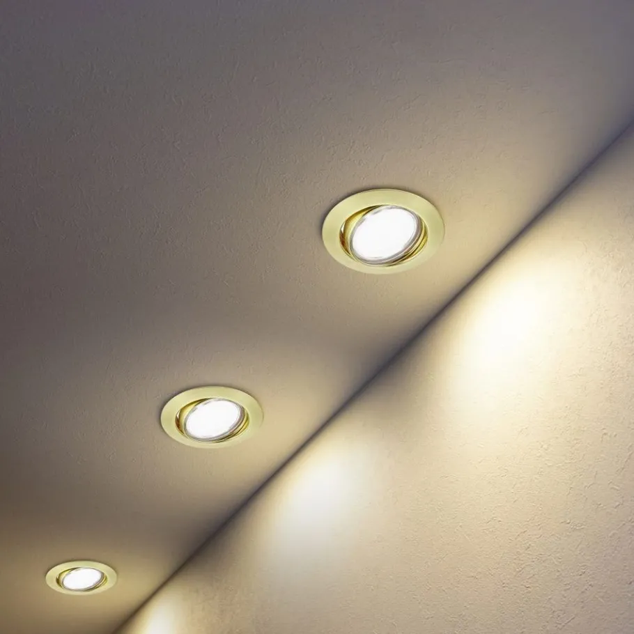 Het geheim van TRIO inbouwarmaturen is: tijdloos.flexibel.designgericht. Met de juiste inbouwspots kunnen stijlvolle accenten worden gezet en kan een sfeervolle ambiance worden gecreëerd. De draaibare inbouwspots van de JURA serie kunnen op verschillende manieren worden gebruikt – als basisverlichting of voor het gericht accentueren van geselecteerde gebieden. De lichtbron is verwisselbaar, zodat u uw persoonlijke favoriet kunt kiezen uit schakelbare en dimbare lichtbronnen voor breed licht of gericht licht. Het ronde design is tijdloos en past gemakkelijk in verschillende interieurstijlen. De JURA inbouwspot heeft een diameter van 82 mm en vereist een plafonduitsparing van 68 mm en een installatiediepte van minstens 90 mm. De inbouwspots in mat messing geven je woonruimtes een geraffineerd en elegant karakter. Voor een energiebesparende verlichting is het gebruik van een ledlichtbron aanbevolen. Deze zijn een optimaal alternatief voor gewone halogeenlampen en staan voor een hoge lichtkwaliteit en een energiebesparing van tot 80%. Bovendien profiteert u bij ledlichtbronnen van een lange levensduur, een geringe warmteontwikkeling en spaart tegelijkertijd het milieu.