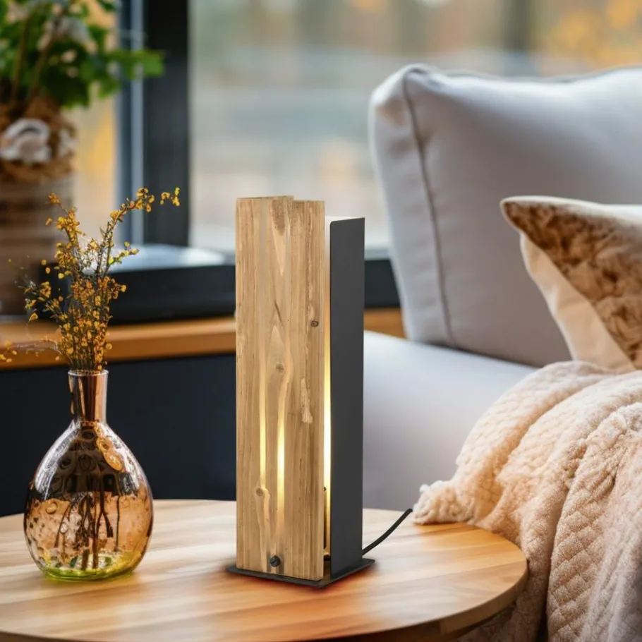 De armatuurserie KARUNI richt zich op authentiek hout en verandert je kamers in ware oases van welzijn. Met haar indrukwekkende uitsparingen creëert de tafellamp fascinerende licht- en schaduwspellen die stijlvol de sfeer bepalen in elke kamer. Op een ladekast of nachtkastje – KARUNI trekt als decoratief element ieders aandacht. De combinatie van natuurlijk hout en mat zwart metaal maakt het geheel nog gezelliger en geeft je huis een warme, uitnodigende sfeer. Het gebruik van LED lichtbronnen wordt aanbevolen voor energiebesparende verlichting. Deze vormen een ideaal alternatief voor conventionele halogeenlichtbronnen en bieden een hoge lichtkwaliteit en energiebesparingen tot 80%. Met LED lichtbronnen profiteert u ook van een lange levensduur en een lage warmteontwikkeling, terwijl het milieu wordt beschermd.
