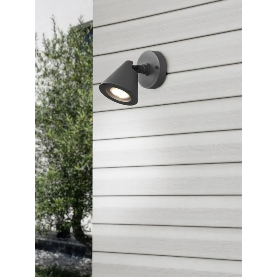 Gereduceerd design en klassieke vorm – Buitenlamp KAVERI. In de ingangszone, op het balkon of aan de muur van uw terras zorgt de tijdloze wandmuur voor een uitnodigende sfeer en optimale lichtomstandigheden. Dank het weerbestendige drukgegoten aluminium en de beschermingsklasse IP44 is de lamp beschermd tegen opspattend water en dus geschikt voor de buitenzone. Door het stijlvolle kleurenschema in antraciet wordt uw outdoorzone opgewaardeerd met moderne kleuraccenten. Voor een energiebesparende verlichting is het gebruik van een ledlichtbron aanbevolen. Deze zijn een optimaal alternatief voor gewone halogeenlampen en staan voor een hoge lichtkwaliteit en een energiebesparing van tot 80%. Bovendien profiteert u bij ledlichtbronnen van een lange levensduur, een geringe warmteontwikkeling en spaart tegelijkertijd het milieu.
