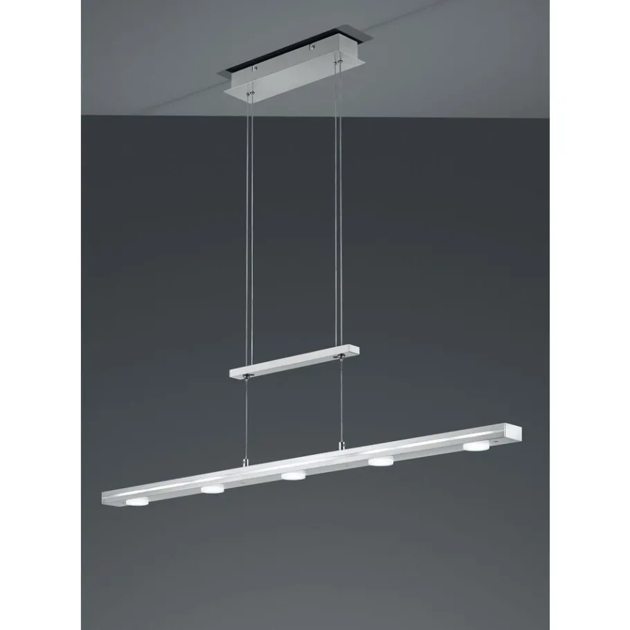 De hanglamp LACAL overtuigt door haar tijdloze look en een rechtlijnige vormgeving. Naast het stijlvolle uitzicht kan de lamp ook overtuigen met haar technische hoogtepunten: door middel van twee toetsen op de bovenkant van de lamp kunnen de helderheid en lichtkleur onafhankelijk van elkaar bestuurd worden. Kies uit drie helderheidsniveaus de juiste sfeer voor uw behoeften. De LACAL laat zich perfect boven de eettaffel plaatsen en kan door het strakke design uitstekend in verschillende inrichtingsstijlen geïntegreerd worden. Van de zeven lichtbronnen zijn er vijf ronde te vinden aan de onderkant van de lamp en twee rechthoekige aan de bovenkant. De hoogte van de hanglamp kan tussen 95 en 160 cm individueel versteld worden. De armatuur in mat nikkel ziet er elegant uit en zorgt voor een harmonieus totaalbeeld en gerichte verlichting dankzij de opwaartse en neerwaartse lichtemissie. Daarnaast beschikt de lamp over een moderne ledtechnologie die zich onderscheidt met een hoge lichtkwaliteit en energie-efficiëntie. In vergelijking met gewone halogeenlampen kan tot 80% bespaard worden op de energiekosten. Bovendien hebben ledlampen een lange levensduur, produceren minder warmte en zijn milieuvriendelijk.
