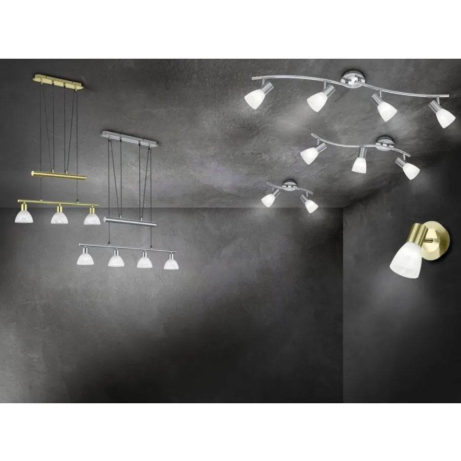 Spotlights, ongeacht het ontwerp, zijn altijd in de mode. Geen wonder, gewoon praktisch en overal te gebruiken. Dit zijn argumenten die je gewoon niet kunt weerstaan. De LEVISTO wandspot met één vlam heeft een modern design en maakt indruk met zijn zwenkbare spot. Het artikel heeft een breedte van 10 cm en een hoogte van 14,5 cm en slaat een goed figuur in alle woonruimtes. De lamp valt op door haar tijdloos elegante afwerking in mat messing en albastkleurig wit glas en past naadloos in verschillende inrichtingsstijlen. Voor een energiebesparende verlichting is het gebruik van een ledlichtbron aanbevolen. Deze zijn een optimaal alternatief voor gewone halogeenlampen en staan voor een hoge lichtkwaliteit en een energiebesparing van tot 80%. Bovendien profiteert u bij ledlichtbronnen van een lange levensduur, een geringe warmteontwikkeling en spaart tegelijkertijd het milieu.