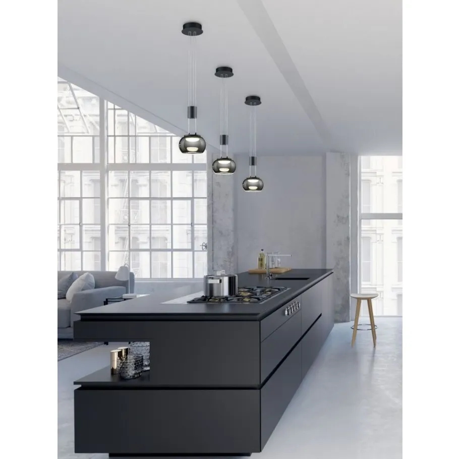 De hanglamp MADISON zorgt met haar moderne vormtaal voor eenvoudige elegantie. De sierlijke glazen kap kan individueel in de hoogte worden versteld en zet de gewenste lichtaccenten. Midden boven de eettafel geplaatst komt de pendellamp als centraal element bijzonder goed tot gelding. De geïntegreerde SWITCH-dimmer maakt bovendien verschillende helderheidsniveaus mogelijk en zorgt voor passende lichtstemmingen. Dankzij het kleurenschema in mat zwart met een glazen schermen in chroom zet de lamp moderne accenten en kan met aanwezig meubilair gecombineerd worden. Daarnaast beschikt de lamp over een moderne ledtechnologie die zich onderscheidt met een hoge lichtkwaliteit en energie-efficiëntie. In vergelijking met gewone halogeenlampen kan tot 80% bespaard worden op de energiekosten. Bovendien hebben ledlampen een lange levensduur, produceren minder warmte en zijn milieuvriendelijk.