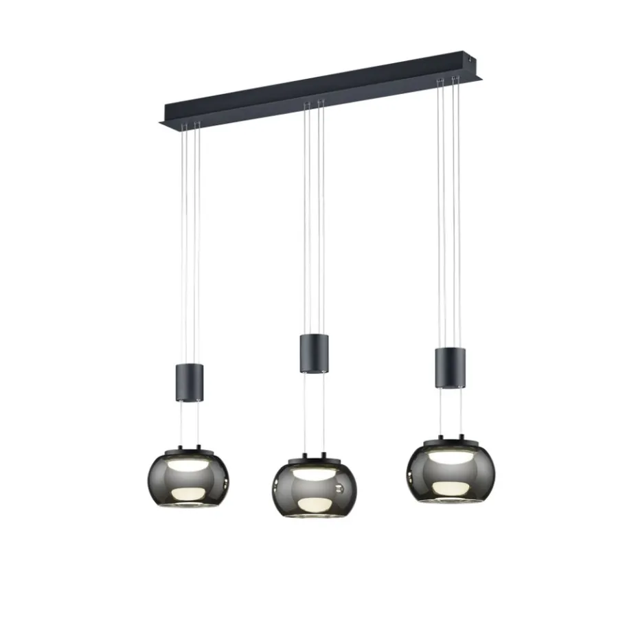 De hanglamp MADISON zorgt met haar moderne vormtaal voor eenvoudige elegantie. De sierlijke glazen kappen kunnen individueel in de hoogte worden versteld en zetten de gewenste lichtaccenten. Midden boven de eettafel geplaatst komt de pendellamp als centraal element bijzonder goed tot gelding. De geïntegreerde SWITCH-dimmer maakt bovendien verschillende helderheidsniveaus mogelijk en zorgt voor passende lichtstemmingen. Dankzij het kleurenschema in mat zwart met glazen schermen in chroom zet de lamp moderne accenten en kan met aanwezig meubilair gecombineerd worden. Daarnaast beschikt de lamp over een moderne ledtechnologie die zich onderscheidt met een hoge lichtkwaliteit en energie-efficiëntie. In vergelijking met gewone halogeenlampen kan tot 80% bespaard worden op de energiekosten. Bovendien hebben ledlampen een lange levensduur, produceren minder warmte en zijn milieuvriendelijk.