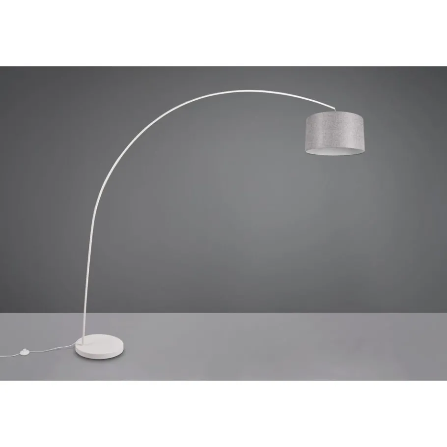 Gebogen armaturen geven je huis een modern tintje en stralen tegelijkertijd een aangenaam gevoel van rust uit. Dit is ook het geval met de MANSUR vloerlamp, die een warme sfeer creëert met zijn slanke, gebogen frame en eenvoudige kapvorm. De klassieke stoffen kap richt het licht naar boven en naar beneden en creëert daaronder een prachtig lichteiland waar je kunt lezen of ontspannen. De MANSUR is bijzonder geschikt voor grote woonkamers, omdat hij veel ruimte inneemt en effectief is als decoratief element op zich. De stoffen kap is grijs en wordt gecompleteerd door een frame en voet in mat wit. Het gebruik van LED lichtbronnen wordt aanbevolen voor energiebesparende verlichting. Deze vormen een ideaal alternatief voor conventionele halogeenlichtbronnen en bieden een hoge lichtkwaliteit en energiebesparingen tot 80%. Met LED lichtbronnen profiteert u ook van een lange levensduur en een lage warmteontwikkeling, terwijl het milieu wordt beschermd.