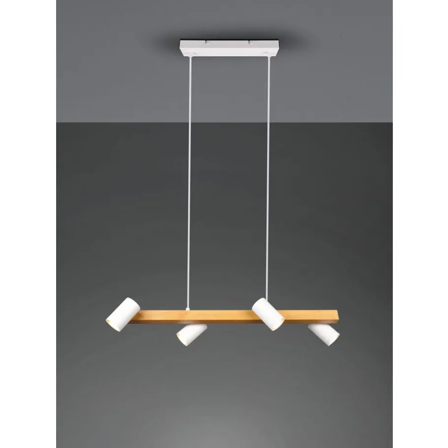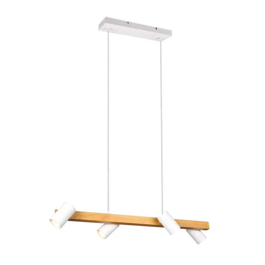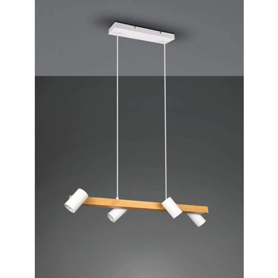 De hanglamp MARLEY is niet alleen praktisch in vorm en functie, maar vooral één ding: gewoonweg mooi! De lamp heeft een discreet design en overtuigt door haar hoogwaardige afwerking. In de keuken of in de woonzone: de viervlammige MARLEY kan veelzijdig gebruikt worden en laat zich goed combineren met verschillende inrichtingsstijlen. De slinger is ontworpen in de kleur mat wit en hout en kan daardoor moderne kleurconcepten stijlvol aanvullen en vervolledigen. Voor een energiebesparende verlichting is het gebruik van een ledlichtbron aanbevolen. Deze zijn een optimaal alternatief voor gewone halogeenlampen en staan voor een hoge lichtkwaliteit en een energiebesparing van tot 80%. Bovendien profiteert u bij ledlichtbronnen van een lange levensduur, een geringe warmteontwikkeling en spaart tegelijkertijd het milieu.