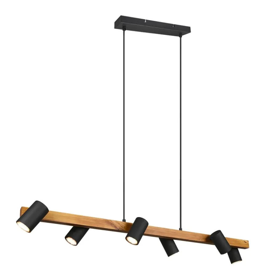 De hanglamp MARLEY is niet alleen praktisch in vorm en functie, maar vooral één ding: gewoonweg mooi! De lamp heeft een discreet design en overtuigt door haar hoogwaardige afwerking. In de keuken of in de woonzone: de zesvlammige MARLEY kan veelzijdig gebruikt worden en laat zich goed combineren met verschillende inrichtingsstijlen. De slinger is ontworpen in de kleur mat zwart en hout en kan daardoor moderne kleurconcepten stijlvol aanvullen en vervolledigen. Voor een energiebesparende verlichting is het gebruik van een ledlichtbron aanbevolen. Deze zijn een optimaal alternatief voor gewone halogeenlampen en staan voor een hoge lichtkwaliteit en een energiebesparing van tot 80%. Bovendien profiteert u bij ledlichtbronnen van een lange levensduur, een geringe warmteontwikkeling en spaart tegelijkertijd het milieu.