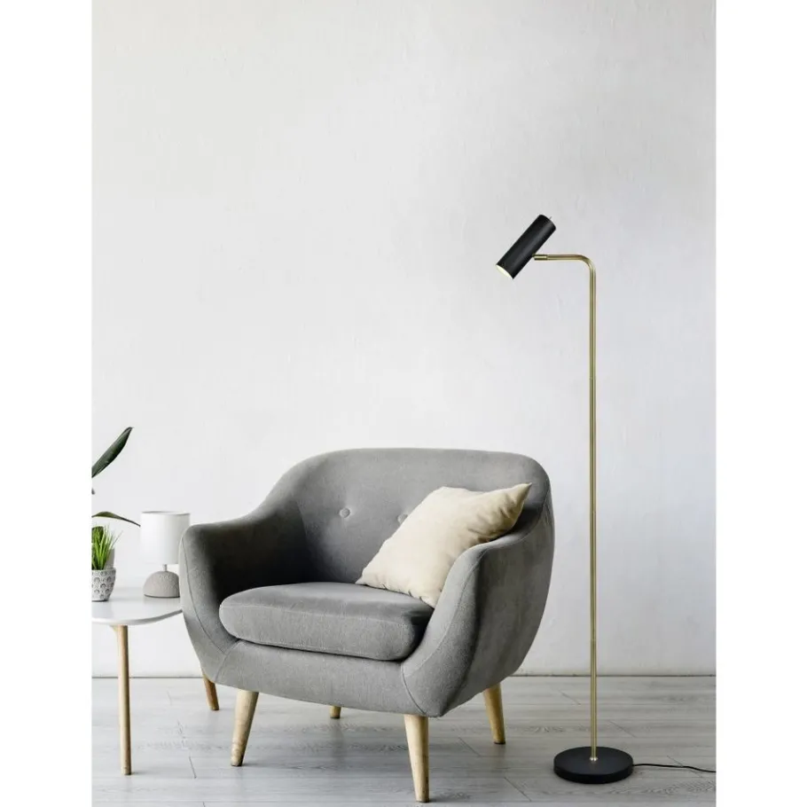 De minimalistische interieurtrend wordt steeds populairder en zorgt voor een rustgevende en harmonische omgeving. Door de heldere lijnen en het gereduceerde design van de staande lamp MARLEY treedt het licht op de voorgrond en zorgt voor sfeervolle lichtaccenten. De lampenkop is beweegbaar en kan vrij naar boven en beneden gericht worden. Als leeslamp naast de sofa of als subtiele lichtbron in de hal, de staande lamp zet bijzondere plekken optimaal in scène. Door de combinatie van de kleuren mat zwart en mat messing wordt een moderne lamp gecreëerd die kleurcontrasten zet. Voor een energiebesparende verlichting is het gebruik van een ledlichtbron aanbevolen. Deze zijn een optimaal alternatief voor gewone halogeenlampen en staan voor een hoge lichtkwaliteit en een energiebesparing van tot 80%. Bovendien profiteert u bij ledlichtbronnen van een lange levensduur, een geringe warmteontwikkeling en spaart tegelijkertijd het milieu.