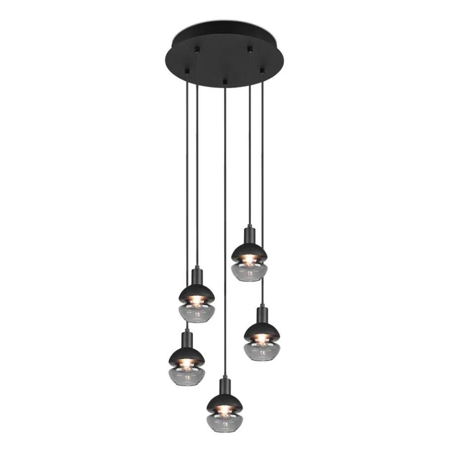 Met haar eenvoudig en modern design past de hanglamp MELA zich aan elke woonstijl aan. De vijfvlammige hanglamp wordt, in het midden boven de eettafel geplaatst, een echte blikvanger en zorgt voor optimale lichtomstandigheden. Door hun futuristische vorm geven de glazen kappen het licht op een bijzondere manier af aan de omgeving en creëren gezellige lichtaccenten. Het tijdloze design in mat zwart laat veel ruimte voor andere kleuren en maakt de integratie in bestaande woonconcepten wonderlijk eenvoudig. Voor een energiebesparende verlichting is het gebruik van een ledlichtbron aanbevolen. Deze zijn een optimaal alternatief voor gewone halogeenlampen en staan voor een hoge lichtkwaliteit en een energiebesparing van tot 80%. Bovendien profiteert u bij ledlichtbronnen van een lange levensduur, een geringe warmteontwikkeling en spaart tegelijkertijd het milieu.
