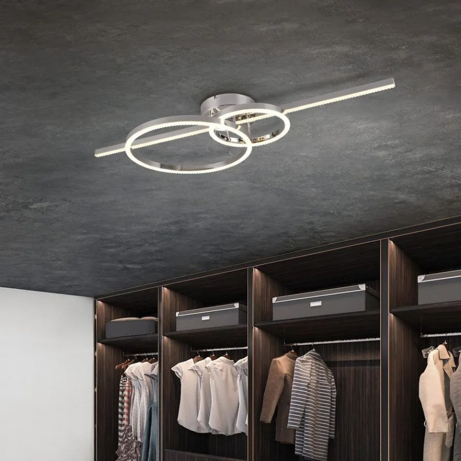 Met haar ongewone design is de MONTILLA wand- en plafondlamp zeker een gespreksonderwerp voor interieurliefhebbers en brengt ze elke dag vreugde. Het ontwerp met geometrische vormen wordt een onafhankelijk designelement in je woonruimte en voegt pure gratie toe aan elke kamer. Functies zoals het dimmen van de lichtsterkte en het aanpassen van de lichtkleur bieden individuele ontwerpopties voor de ruimte. De lamp wordt gecompleteerd door extra functies zoals de nachtlichtfunctie of geheugenfunctie. Alle instellingen kunnen gemakkelijk vanaf de bank worden bediend met de meegeleverde afstandsbediening. Laat het samenspel van materiaaleffect, vormenspel en lichtsfeer tot zijn recht komen in je huis. Het ontwerp van verchroomd metaal en wit plastic trekt ieders aandacht, zowel bij het aan- als uitschakelen. De armatuur is ook voorzien van moderne LED-technologie, die wordt gekenmerkt door een hoge lichtkwaliteit en energie-efficiëntie. Vergeleken met conventionele halogeenlichtbronnen kan tot 80% op de energiekosten worden bespaard. Met LED lichtbronnen profiteert u ook van een lange levensduur en een lage warmteontwikkeling, terwijl het milieu wordt beschermd.