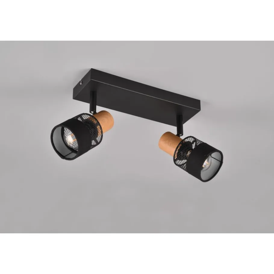 Lichtheid door een interessante mix van materialen! De spots van de serie NANDINI combineren hout, textiel en metaal op een tijdloze manier die momenteel erg trendy is en tegelijkertijd een gezellige woonsfeer creëert. De tweelichts spot is de ideale keuze voor het plaatsen van individuele lichtaccenten in de gang of woonkamer en scoort punten met zijn flexibele montage aan de muur of het plafond. De spot zal je bekoren met zijn gezellige flair en lichtspel! De combinatie van metaal in matzwart en houten elementen is terug te vinden in moderne en minimalistische inrichtingsstijlen. Het gebruik van LED lichtbronnen wordt aanbevolen voor energiebesparende verlichting. Deze vormen een ideaal alternatief voor conventionele halogeenlichtbronnen en bieden een hoge lichtkwaliteit en energiebesparingen tot 80%. Met LED lichtbronnen profiteert u ook van een lange levensduur en een lage warmteontwikkeling, terwijl het milieu wordt beschermd.