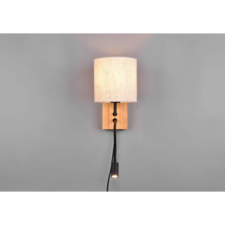 Lampen van natuurlijke materialen brengen lichtheid en gezelligheid in je huis. Dit maakt de NILAM wandlamp perfect voor je slaapkamer! Naast de aangename hoofdlamp met een cilindrische stoffen kap heeft de moderne wandlamp een handige en flexibele leesarm die kan worden gebruikt als tweede lichtbron om het licht aan te passen aan jouw behoeften. Beide lichtbronnen kunnen apart worden geschakeld met twee schakelaars op de behuizing. Dankzij de FLEXconnect-functie is de lamp ook geschikt voor zowel vaste aansluiting als gebruik met een stekkerdraad. De kleur en het materiaal van de lamp in witte stof en onbehandeld natuurlijk hout creëren een oase van welzijn in je slaapgedeelte. Het gebruik van LED lichtbronnen wordt aanbevolen voor energiebesparende verlichting. Deze vormen een ideaal alternatief voor conventionele halogeenlichtbronnen en bieden een hoge lichtkwaliteit en energiebesparingen tot 80%. Met LED lichtbronnen profiteert u ook van een lange levensduur en een lage warmteontwikkeling, terwijl het milieu wordt beschermd.
