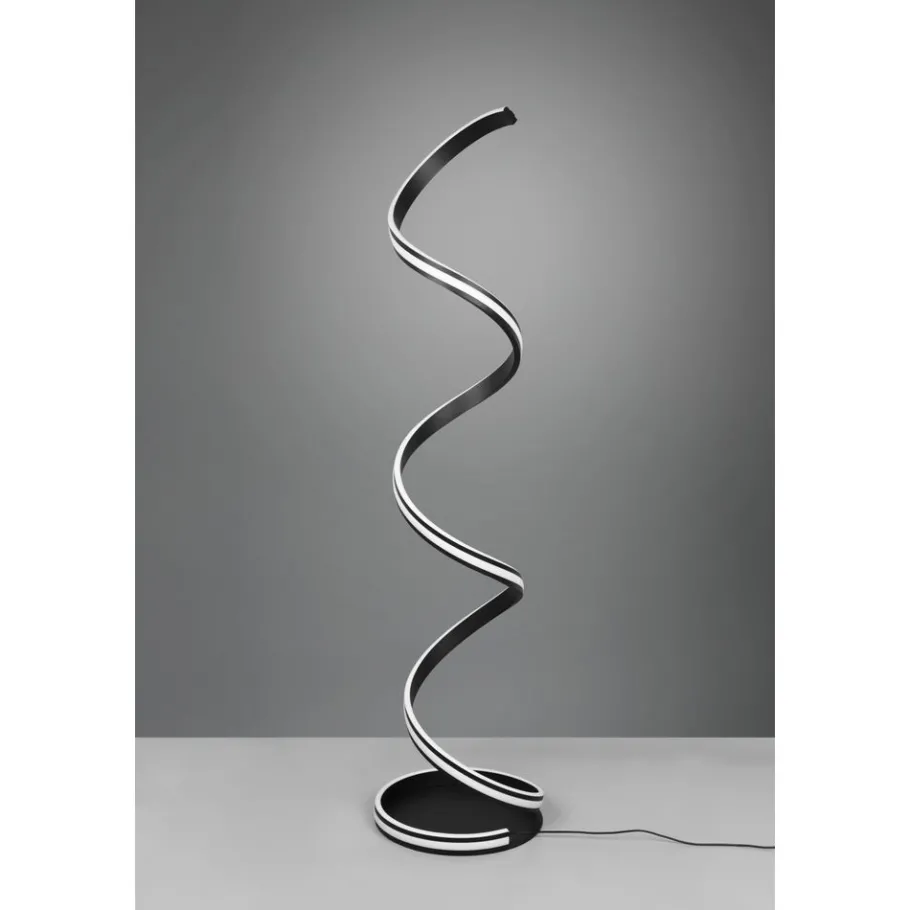 Gebogen vormen vormen de basis van de NURIA armatuur. Het harmonieuze ontwerp en het brede profiel maken de vloerlamp tot een bijzonder verlichtingsobject met praktische extra functies. De armatuur kan worden ingesteld op drie lichtkleuren (warm, neutraal, daglichtwit) en de helderheid kan traploos worden aangepast met een voetschakelaar. Dankzij het matzwarte kleurontwerp kan de lamp met veel inrichtingsconcepten worden gecombineerd. Daarnaast beschikt de lamp over een moderne ledtechnologie die zich onderscheidt met een hoge lichtkwaliteit en energie-efficiëntie. In vergelijking met gewone halogeenlampen kan tot 80% bespaard worden op de energiekosten. Bovendien hebben ledlampen een lange levensduur, produceren minder warmte en zijn milieuvriendelijk.