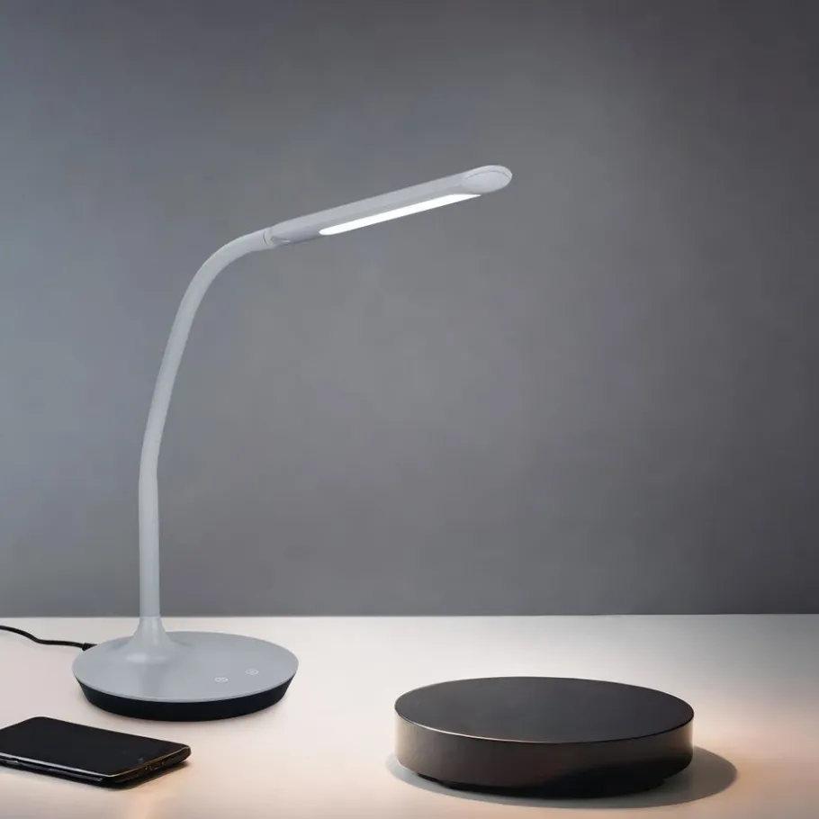 De tafellamp POLO biedt een hoge flexibiliteit in combinatie met een modern en ongecompliceerd ontwerp. De armatuurhals biedt optimale verstelmogelijkheden zodat de lamp individueel kan worden gepositioneerd. Er zijn twee aanraakpunten op de voet van de lamp waarmee de lamp gemakkelijk kan worden in- en uitgeschakeld, 4 keer kan worden gedimd en de lichtkleur trapsgewijs kan worden aangepast (3000/4000/5000 Kelvin). Met een hoogte van 41 cm en een projectie van 40 cm is de tafellamp daarom ideaal als moderne en functionele bureauverlichting. De kleur is volledig grijs, is bewust eenvoudig gehouden en past gemakkelijk in bestaande kleurenconcepten. Daarnaast beschikt de lamp over een moderne ledtechnologie die zich onderscheidt met een hoge lichtkwaliteit en energie-efficiëntie. In vergelijking met gewone halogeenlampen kan tot 80% bespaard worden op de energiekosten. Bovendien hebben ledlampen een lange levensduur, produceren minder warmte en zijn milieuvriendelijk.