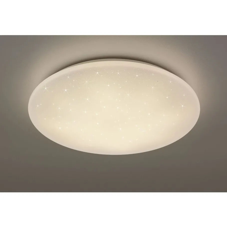 De KATO plafondlamp maakt indruk met haar moderne en eenvoudige ontwerp, dat zich uitstekend aanpast aan verschillende toepassingsgebieden. In combinatie met de verschillende lichtinstellingen creëert de Starlight-afdekking een harmonieuze sfeer en een effectieve verlichting van uw woonruimte. Met de afstandsbediening kun je het armatuur dimmen en de lichtkleur traploos instellen tussen 3000 en 5500 Kelvin en het nachtlicht activeren. De lamp heeft ook een geheugeneffect zodat lichtscenario’s die met de afstandsbediening zijn ingesteld, worden opgeslagen en de laatst geselecteerde instelling wordt hersteld wanneer de lamp met de wandschakelaar wordt uit- en ingeschakeld. Met een diameter van 60 cm is de KATO een echte blikvanger in elke woonkamer. De KATO is bewust in effen wit gehouden, zodat een aangename verlichting is gegarandeerd en hij wonderwel kan worden geïntegreerd in bestaande kleurconcepten. Daarnaast beschikt de lamp over een moderne ledtechnologie die zich onderscheidt met een hoge lichtkwaliteit en energie-efficiëntie. In vergelijking met gewone halogeenlampen kan tot 80% bespaard worden op de energiekosten. Bovendien hebben ledlampen een lange levensduur, produceren minder warmte en zijn milieuvriendelijk.