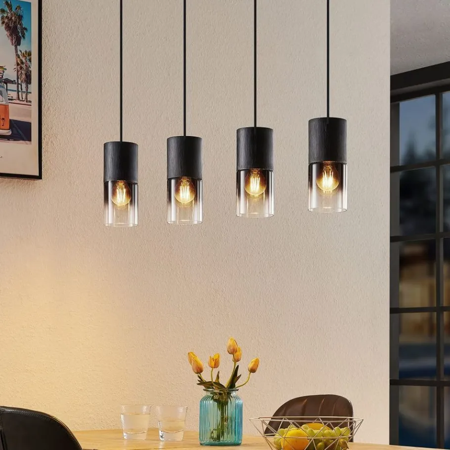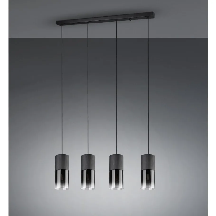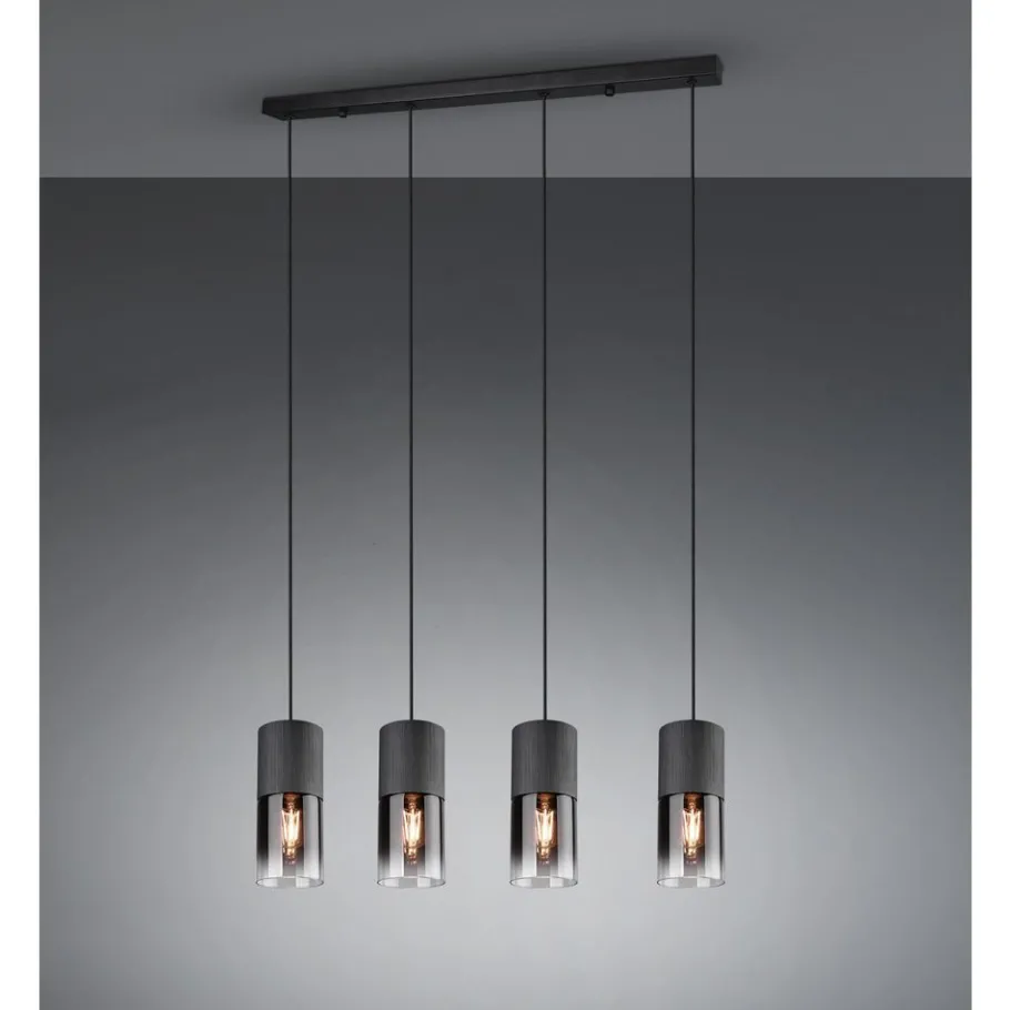 De moderne hanglamp ROBIN is een bijzondere blikvanger dankzij de elegante glazen kap. Je kunt de lamp perfect boven je eettafel plaatsen, waar ze het best tot haar recht komt en het tafeloppervlak gericht verlicht. De 4-lichts hanglamp heeft een maximale lengte van 150 cm en een breedte van 80,5 cm. Dankzij het matzwarte kleurenschema met het rookkleurige glas kan de lamp met veel inrichtingsstijlen worden gecombineerd. Het gebruik van LED lichtbronnen wordt aanbevolen voor energiebesparende verlichting. Deze vormen een ideaal alternatief voor conventionele halogeenlichtbronnen en bieden een hoge lichtkwaliteit en energiebesparingen tot 80%. Met LED lichtbronnen profiteert u ook van een lange levensduur en een lage warmteontwikkeling, terwijl het milieu wordt beschermd.