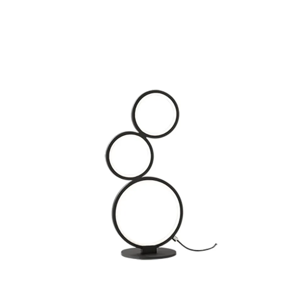Met zijn drie gestapelde ringen van verschillende diameters is de RONDO tafellamp een echte blikvanger. De tafellamp heeft een geïntegreerde dimmer die wordt bediend via de snoerschakelaar. Hiermee kun je de helderheid van de LED’s aan de binnenkant van elke cirkel flexibel regelen. De 45 cm hoge tafellamp is een echt decoratief element en verfraait stijlvol elke woonruimte. Dankzij de mat zwarte kleur kan de lamp met vele inrichtingsstijlen gecombineerd worden. Daarnaast beschikt de lamp over een moderne ledtechnologie die zich onderscheidt met een hoge lichtkwaliteit en energie-efficiëntie. In vergelijking met gewone halogeenlampen kan tot 80% bespaard worden op de energiekosten. Bovendien hebben ledlampen een lange levensduur, produceren minder warmte en zijn milieuvriendelijk.