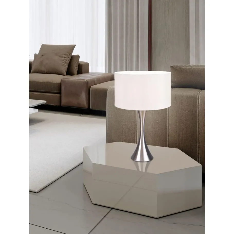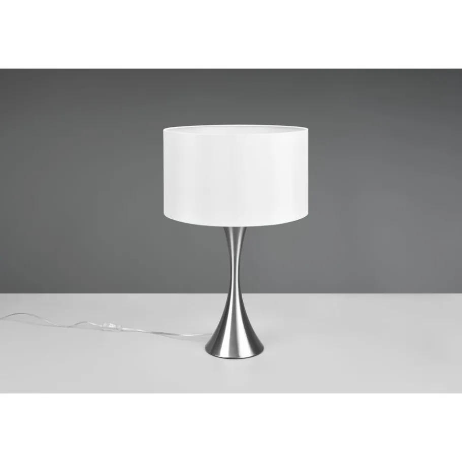 De lampen van de serie SABIA zijn mooi gevormd, qua kleur op elkaar afgestemd en passen perfect in moderne en klassieke interieurs. De elegante stoffen kap van de tafellamp en de elegant gebogen metalen lampvoet zorgen voor een harmonieus totaalbeeld. Het design van de lamp wordt afgerond door de eenvoudige kleurencombinatie van wit en mat nikkel. Voor een energiebesparende verlichting is het gebruik van een ledlichtbron aanbevolen. Deze zijn een optimaal alternatief voor gewone halogeenlampen en staan voor een hoge lichtkwaliteit en een energiebesparing van tot 80%. Bovendien profiteert u bij ledlichtbronnen van een lange levensduur, een geringe warmteontwikkeling en spaart tegelijkertijd het milieu.