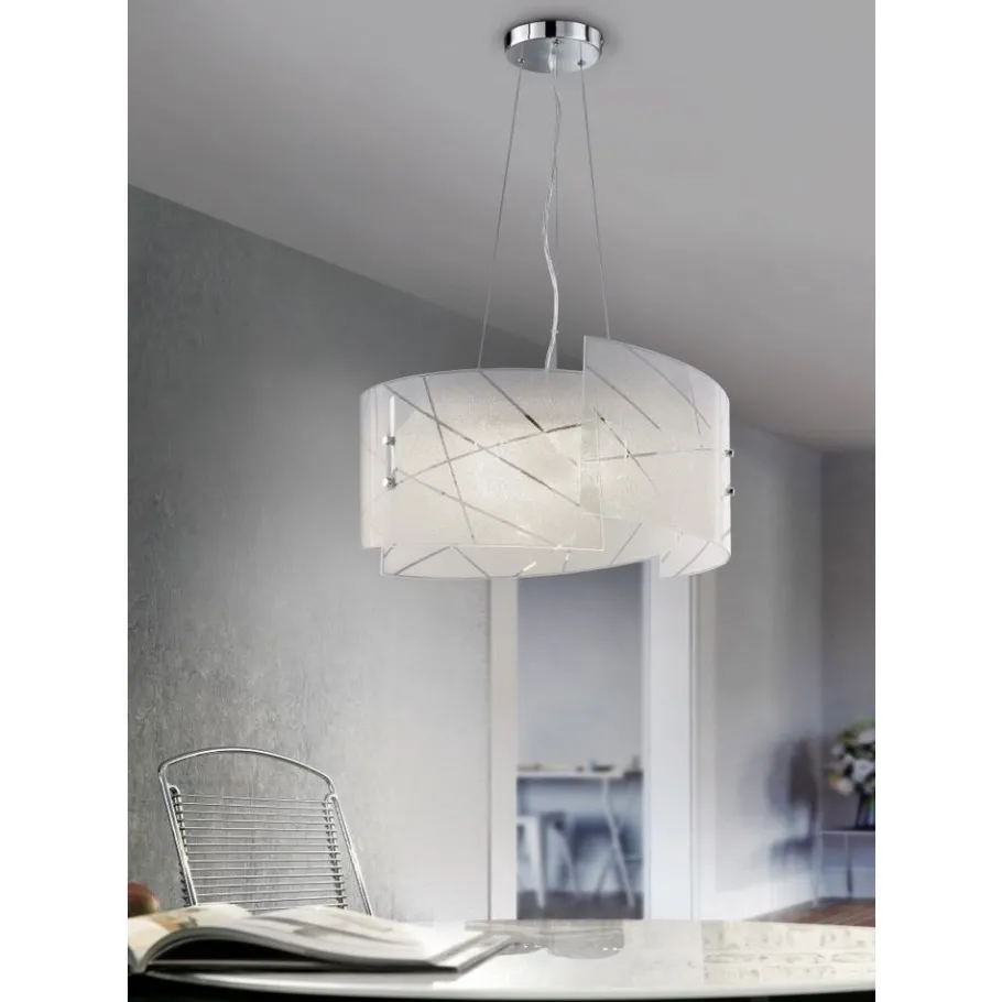 De SANDRINA hanglamp maakt indruk met haar klassieke en tijdloze glasontwerp. Het glas met kristaleffect filtert het licht op harmonieuze wijze en vult je huis met een aangename lichtsfeer. De hanglamp bestaat uit drie met elkaar verbonden elementen en heeft een diameter van 50 cm. De ophanglengte kan individueel worden bepaald tijdens de installatie en is maximaal 150 cm. De hanglamp past perfect in de omgeving en kan worden gebruikt in bijna alle woon- en eetkamers, van klassiek tot modern. De witte kleurstelling vult de stijl aan en hult je woonruimte in een idyllische sfeer. Voor een energiebesparende verlichting is het gebruik van een ledlichtbron aanbevolen. Deze zijn een optimaal alternatief voor gewone halogeenlampen en staan voor een hoge lichtkwaliteit en een energiebesparing van tot 80%. Bovendien profiteert u bij ledlichtbronnen van een lange levensduur, een geringe warmteontwikkeling en spaart tegelijkertijd het milieu.